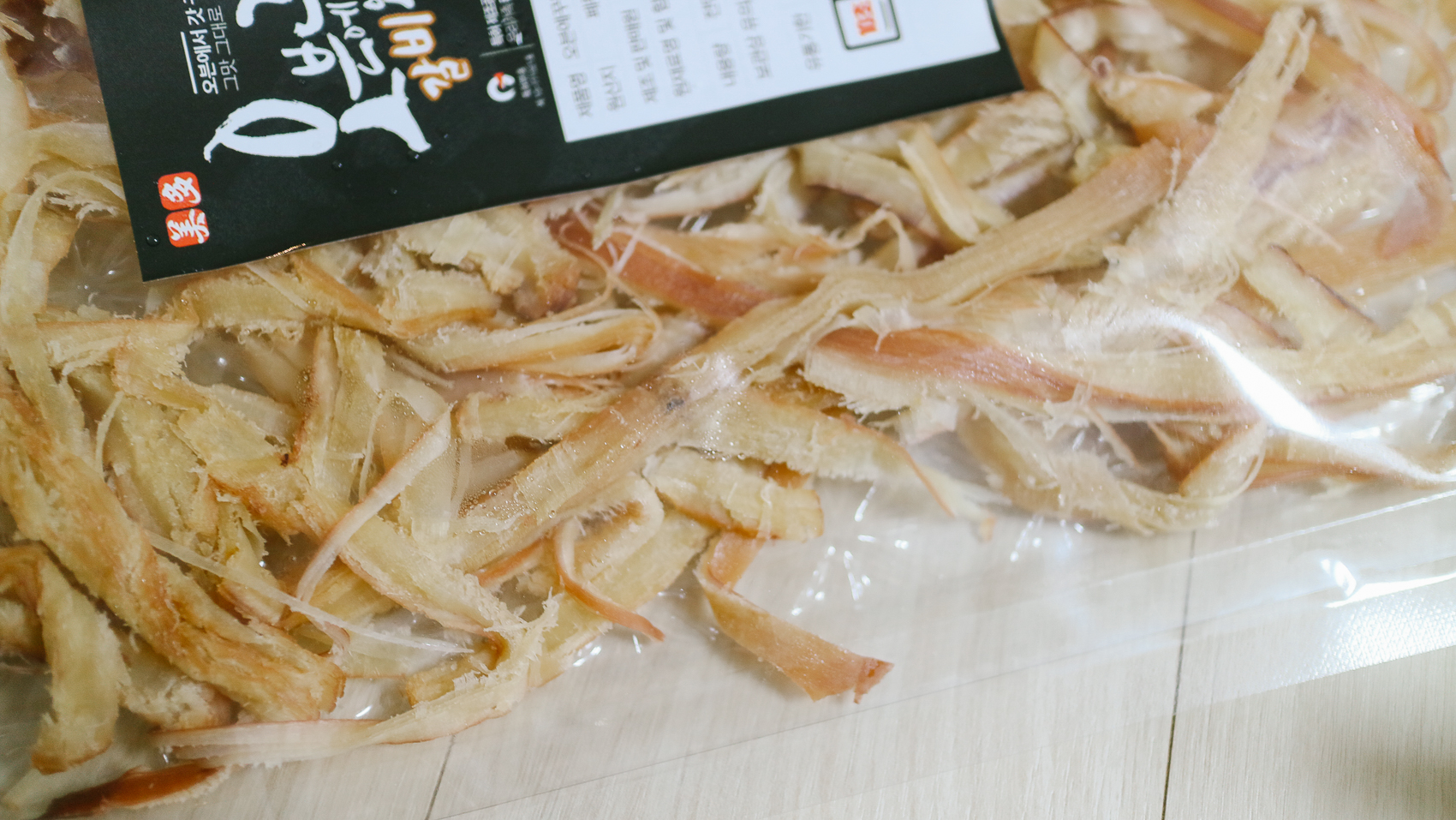 휴게소의 맛 감성을 느끼기에 위해 특별히 추가 주문한 반건조 오징어 피데기. 제품은 냉동보관을 해야하고, 각각 낱개 별 비닐포장으로 되어 살짝만 녹아도 떼어내기가 쉬어 먹을 때 번거로움을 최소화하였다.