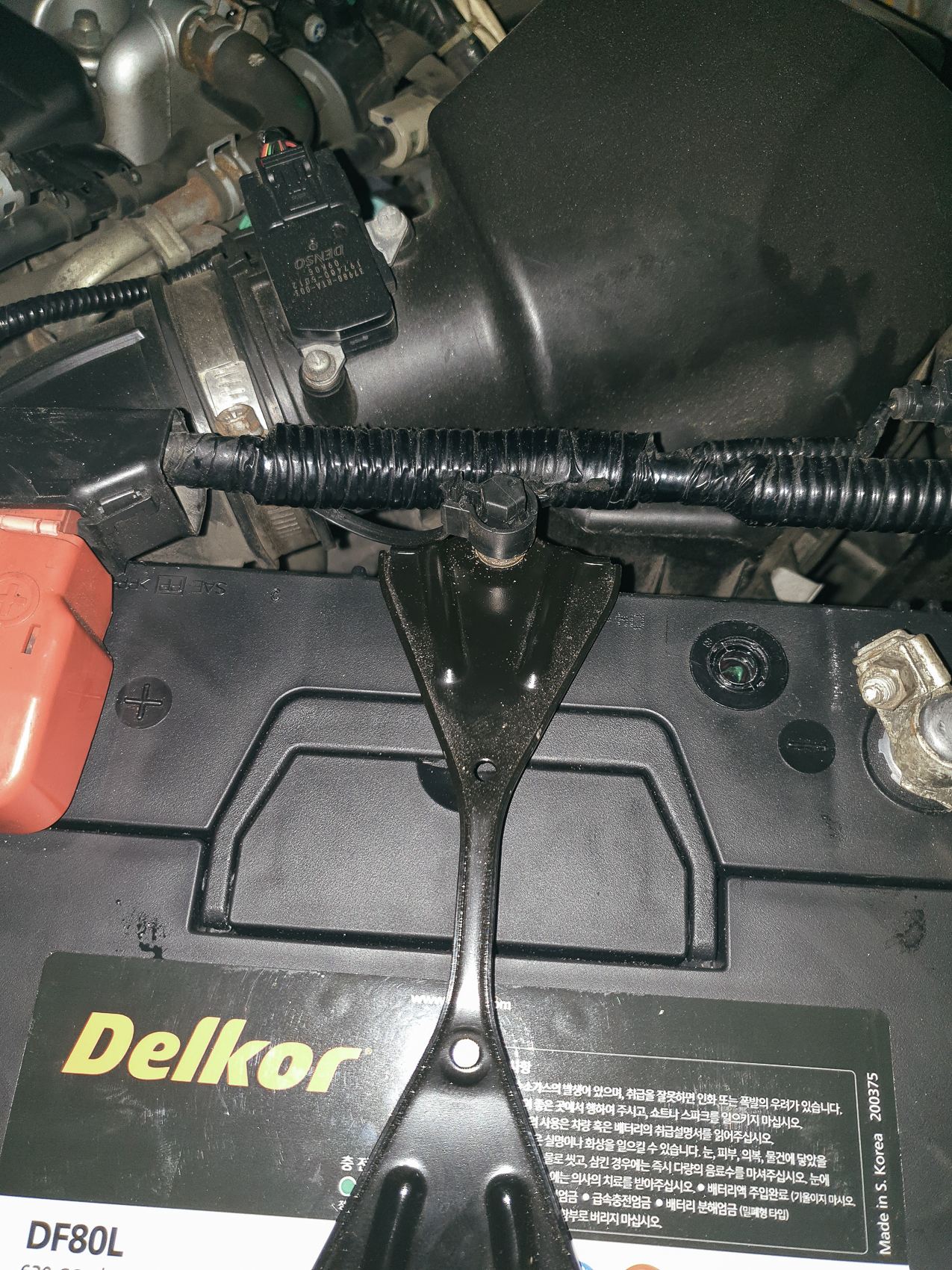 배터리 빼낸 엔진룸의 배터리 공간. 예전에 배터리 확장으로 받침대를 펼쳐놓은 모습이다. 헉 지금보니 펼친 부분에 약간의 녹이 올라온 상태..ㅠㅠ 나중에 녹 제거를 하고 배터리 재조립을 해야 할 것 같다!
