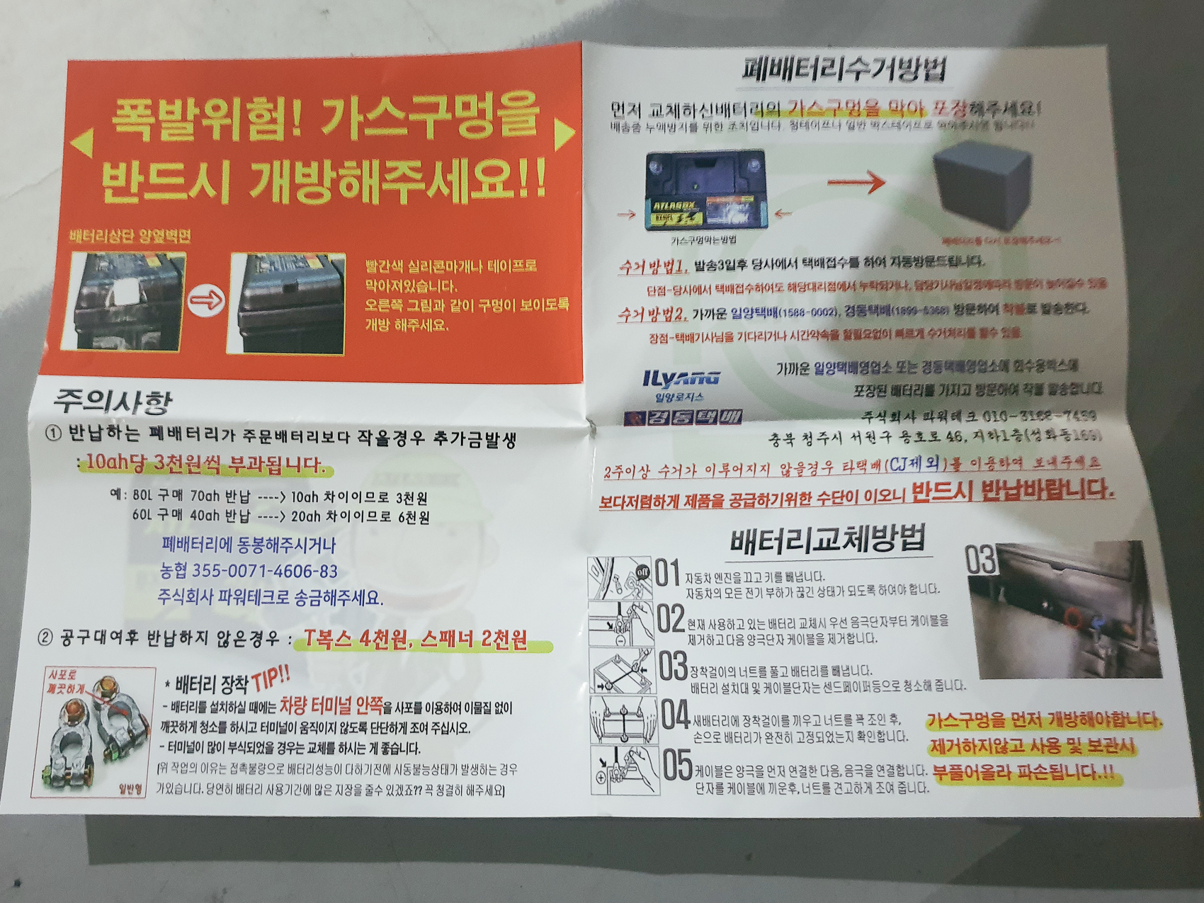 교체하기 전 혹시나 유의할 사항이 있나 동봉된 설명서를 간단하게 읽어준다. 거기서 새 배터리는 가스 구멍을 막아놓고 배송이 되는데 설치 전 이를 꼭 꼭 제거하라고 당부하고 있다.