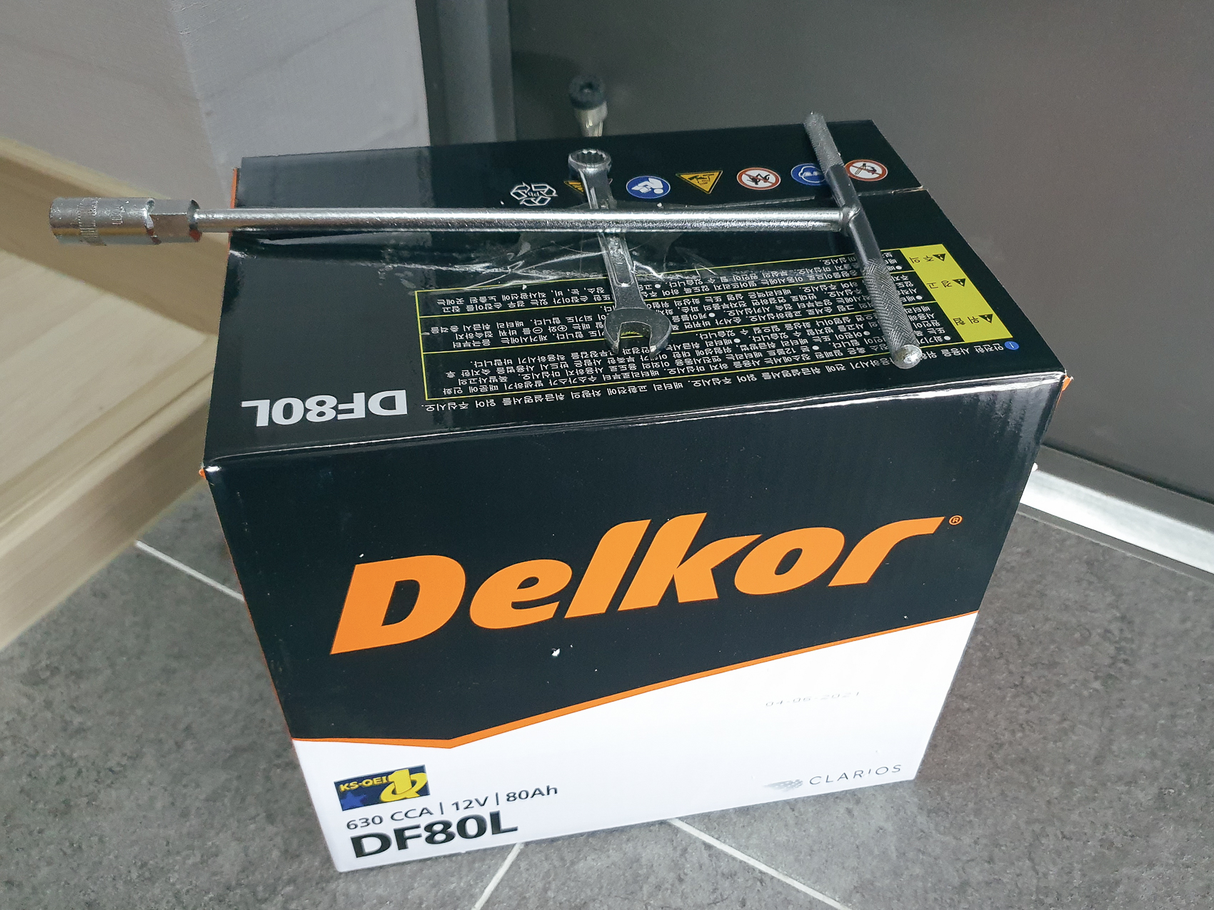 온라인으로 배터리를 구매하게 되면, 폐 배터리 반납조건으로 진행된다. 교체 시 필요한 T복스와 스패너가 있다. 보통 10mm로 많이 쓰이는지 10mm 규격의 T복스, 스패너가 왔다.