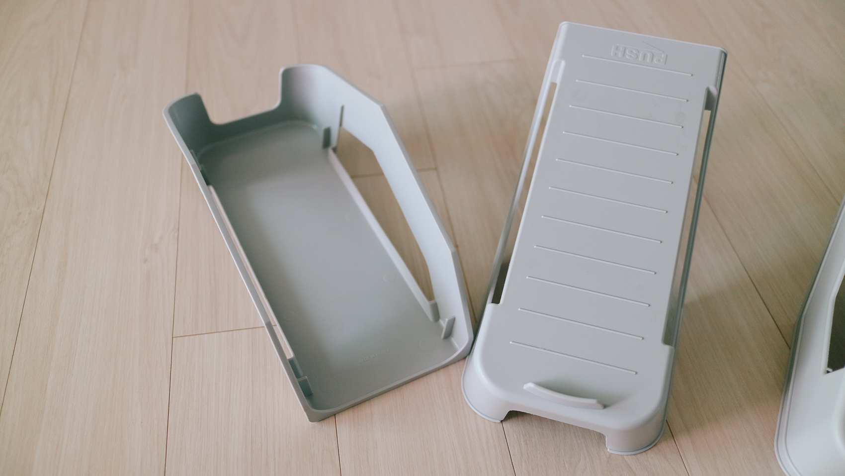 신발장에 점점 공간이 좁아지면서 공간을 효율적으로 활용하기 위해 다이소 신발 정리대를 구매하였다. 다이소에 다양한 타입의 신발 정리대가 있는데, 그중 1,000원에 2개입씩 들어있는 제품을 구매하였다. 컬러는 그레이, 블랙 2종류가 있었고, 다른 디자인은 베이지 색상도 있었다.