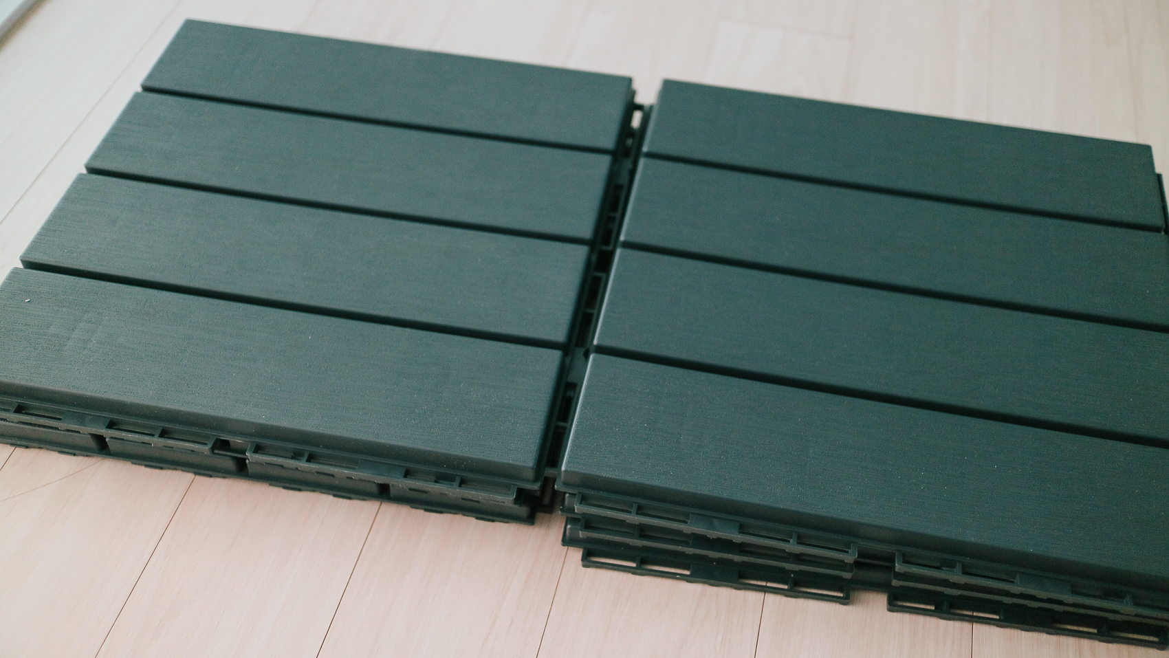 그러던 중 본가에 다녀올 일이 있어서 갔는데, 베란다에 문앞에 원목 발 받침대가 놓여 있는 것을 보고, 받침대를 잘 활용하면 슬리퍼를 번거롭게 안 벗어도 되겠다 싶어 폭풍 검색 후 구매하게 된 베란다 타일 조립식 프리미엄 바닥재이다!