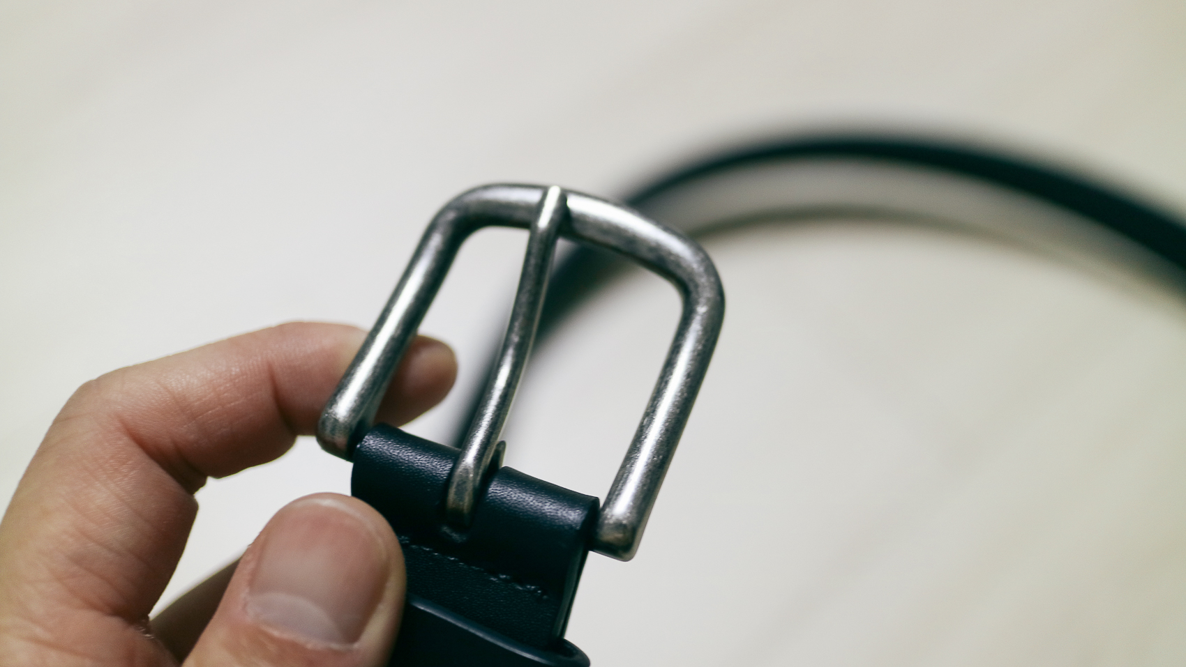 가장 평범하면서도 데님 팬츠, 정장, 슬랙스 등 다양한 코디에도 무난하게 매칭이 되는 데일리 한 레더 벨트라고 할 수 있다. 벨트의 폭도 너무 얇지 않아, 허리띠를 조였을 때 적당히 잡아주는 착용감도 좋다.