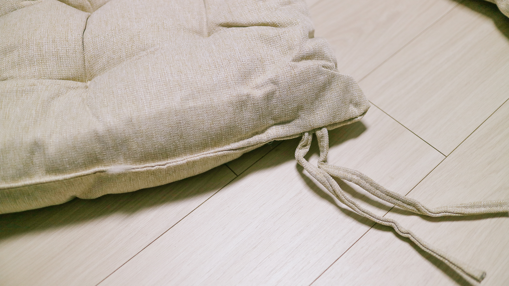 사이즈는 40 x 40cm로 기성품 방석보다 살짝 아담한 느낌이 있지만 도톰한 쿠션감으로 실제로 착석하는 엉덩이 부위는 잘 감싸주어 사용하는 데 있어서는 크게 불편함이 없다.