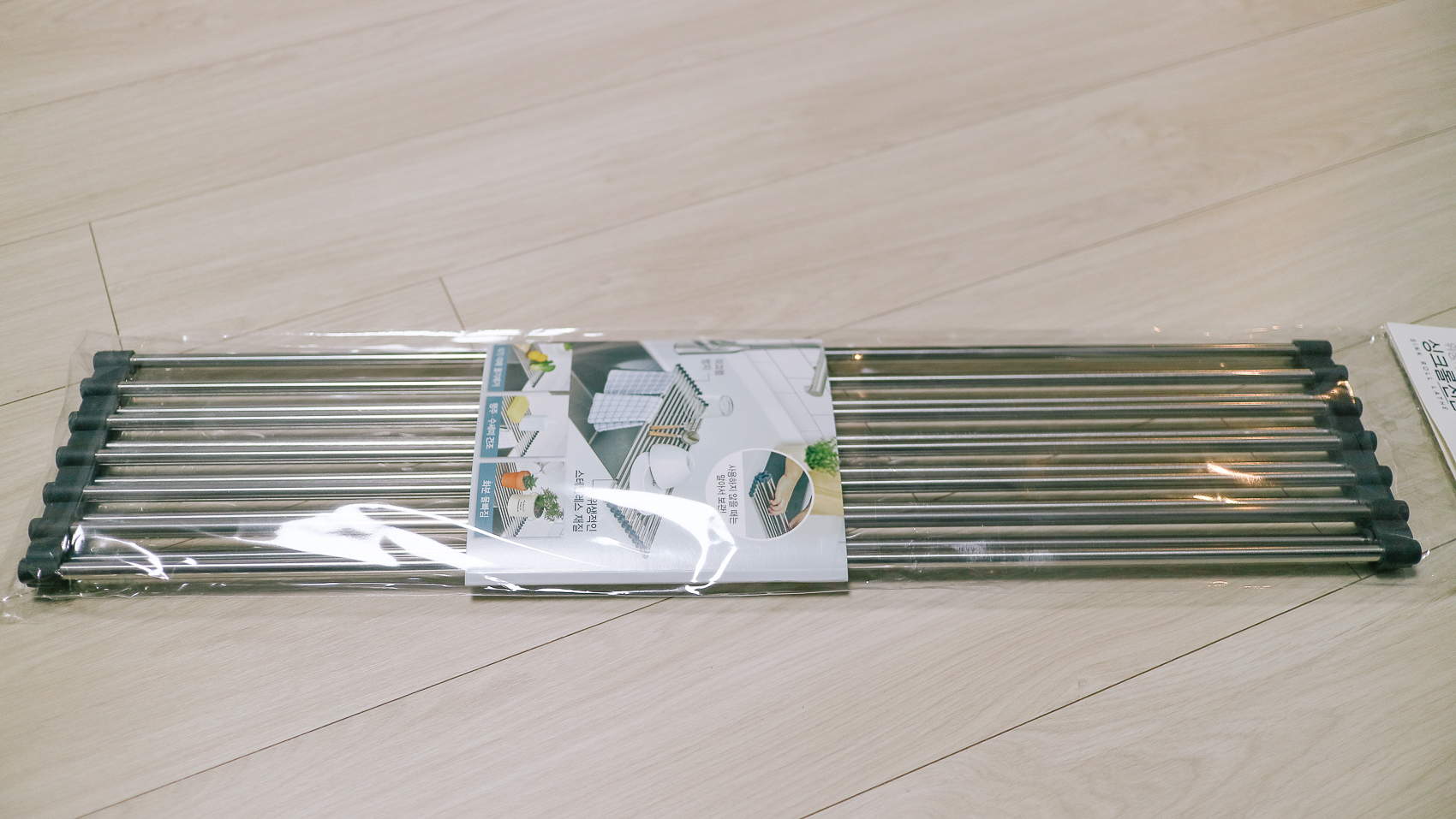 그래서 수납공간은 더 좁지만 깊이감이 있는 바구니 타입이 아닌 펼쳤다 접을 수 있는 다이소 식기 건조대를 구매했다.