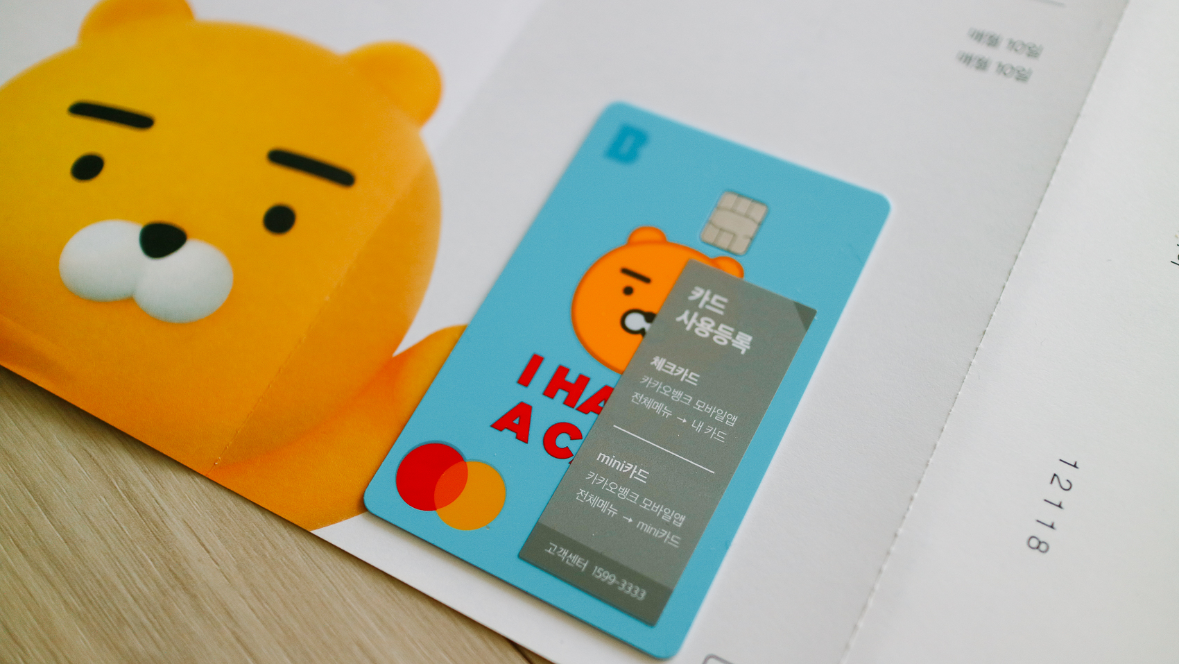 스티커를 제거한 유니크 디자인의 카카오뱅크 체크카드. 고양이를 키운다는 귀여운 코멘트와 함께.. 체크카드의 인기가 높아지면 이 디자인도 풀리겠지..ㅎㅎ 그래도 왠지 극소수만 가지고 있는 체크카드를 갖고 있다는 마음에 괜스레 뿌듯!