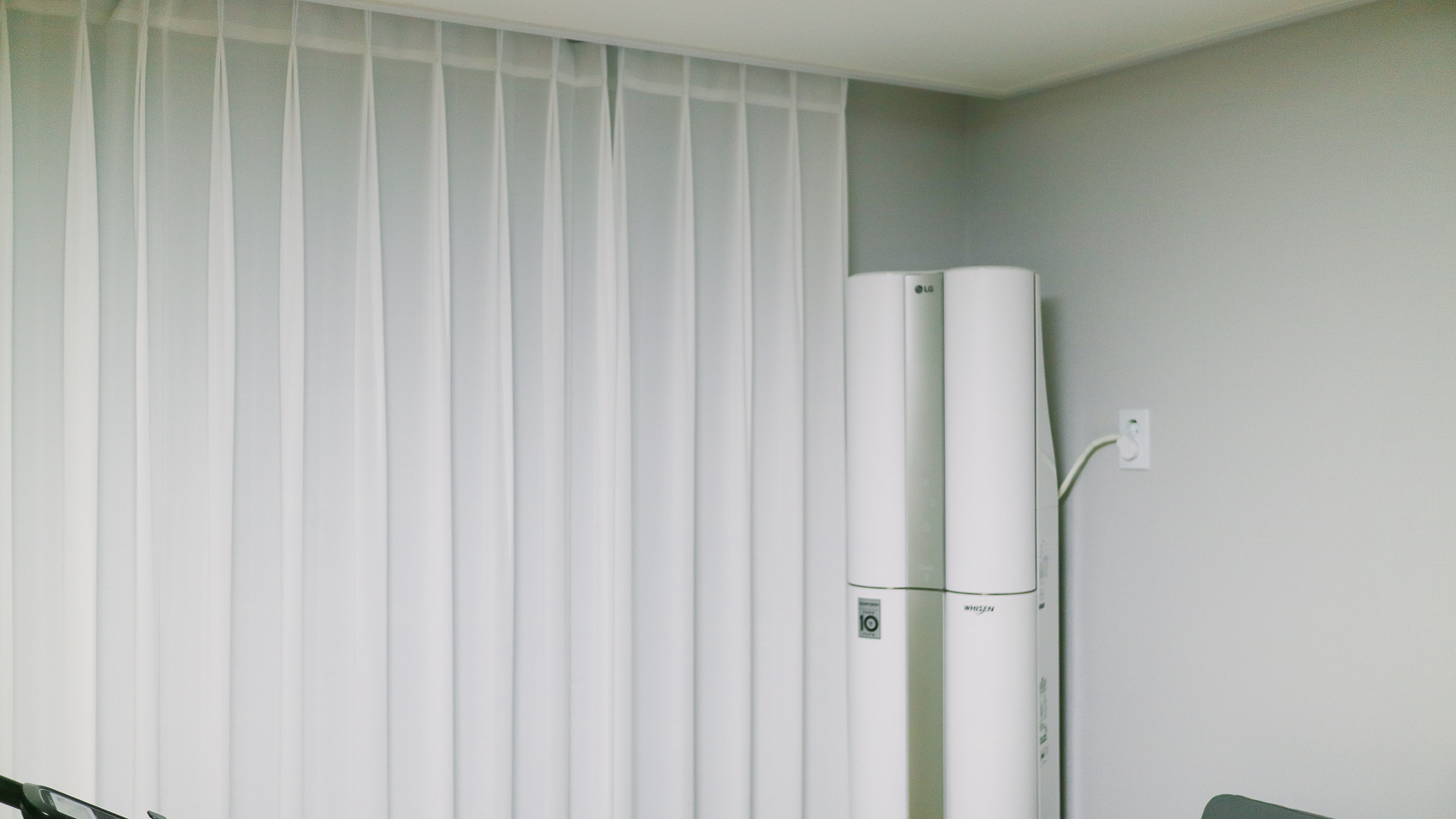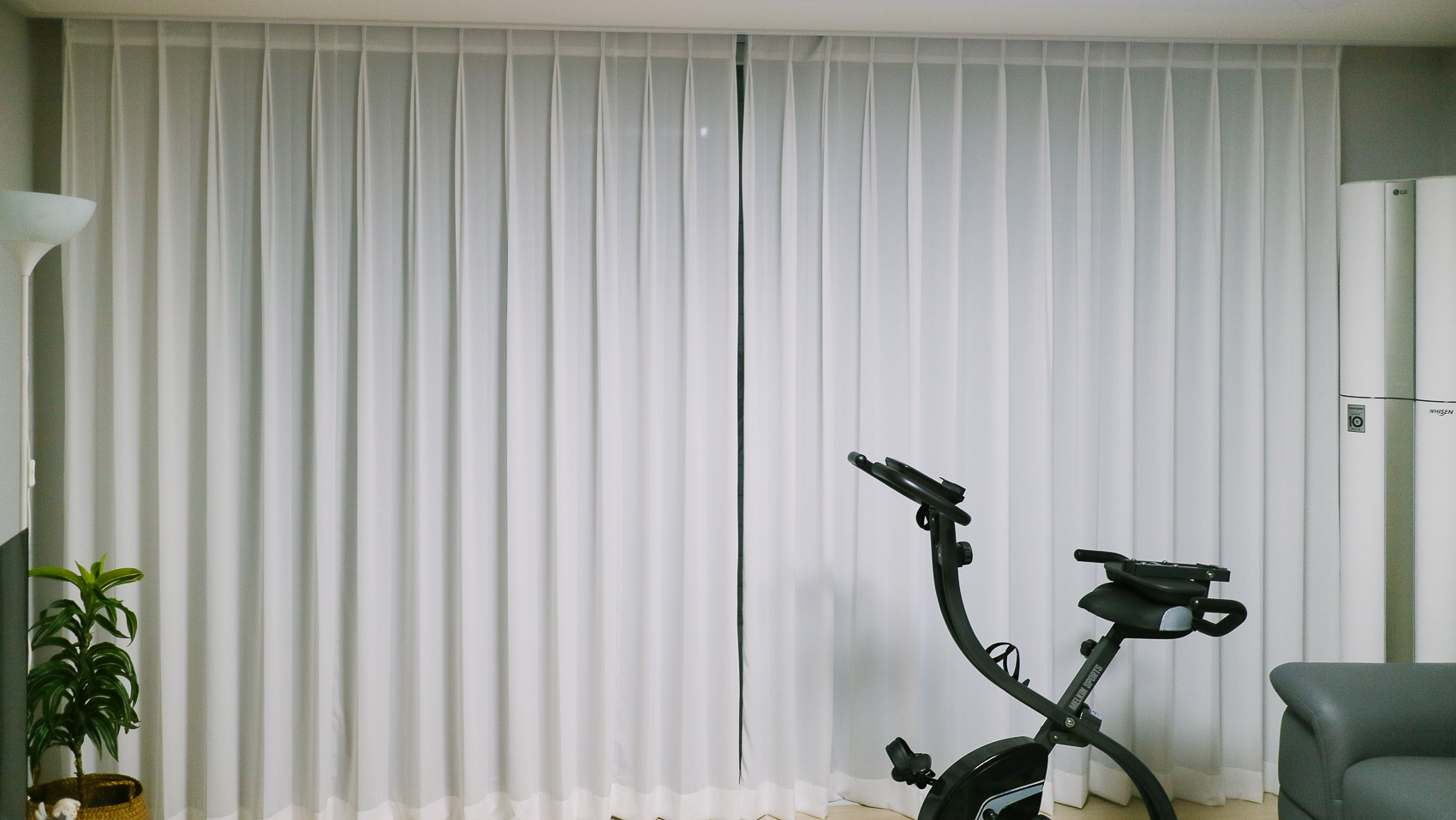 안방에 이어 거실에도 커튼을 설치하기로 했다. 겨울천 방한 효과와 시각적으로 포근한 느낌을 주기 위해서이다. 제품은 거실형으로 세로가 긴 타입 포인트이다.