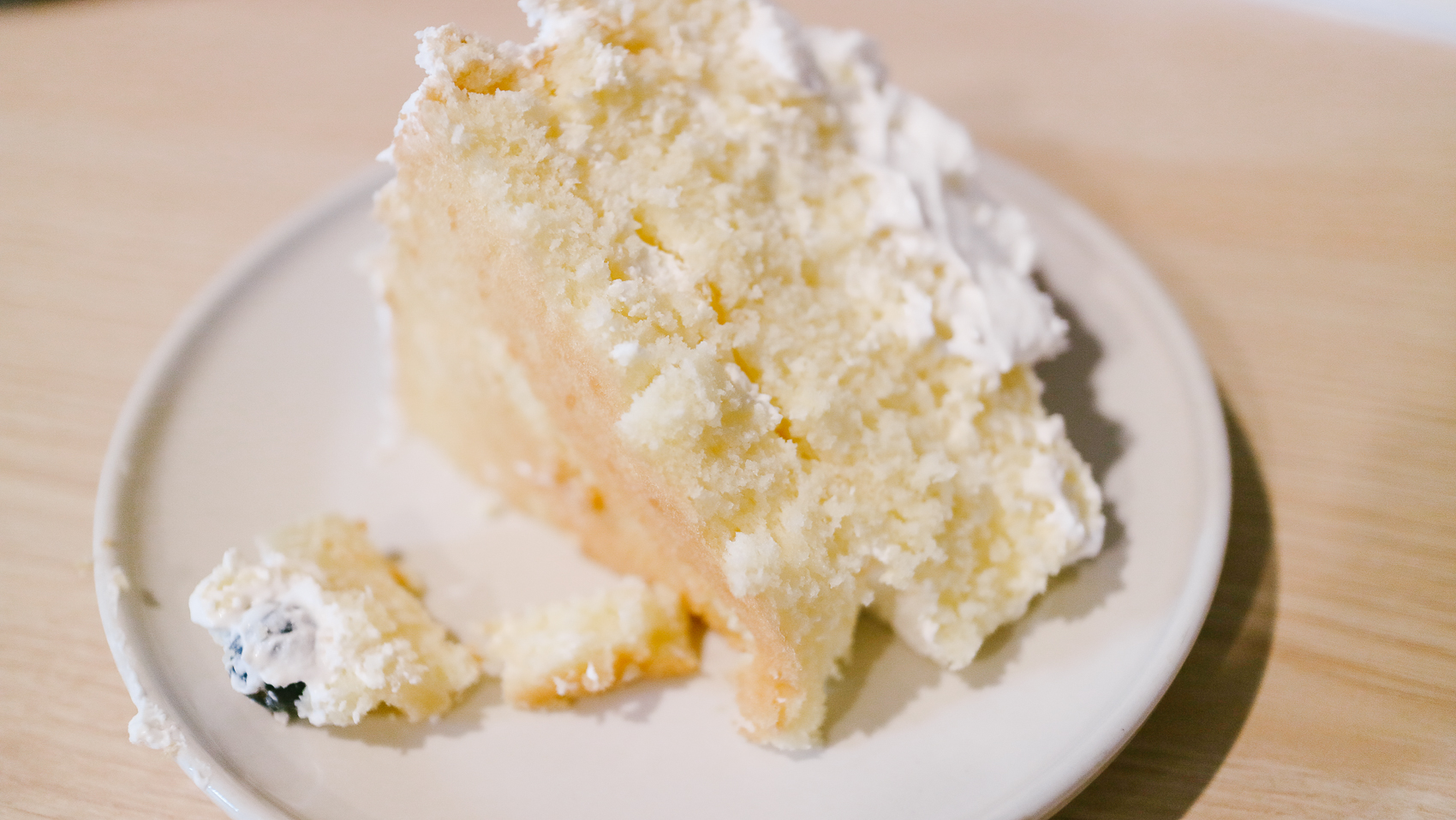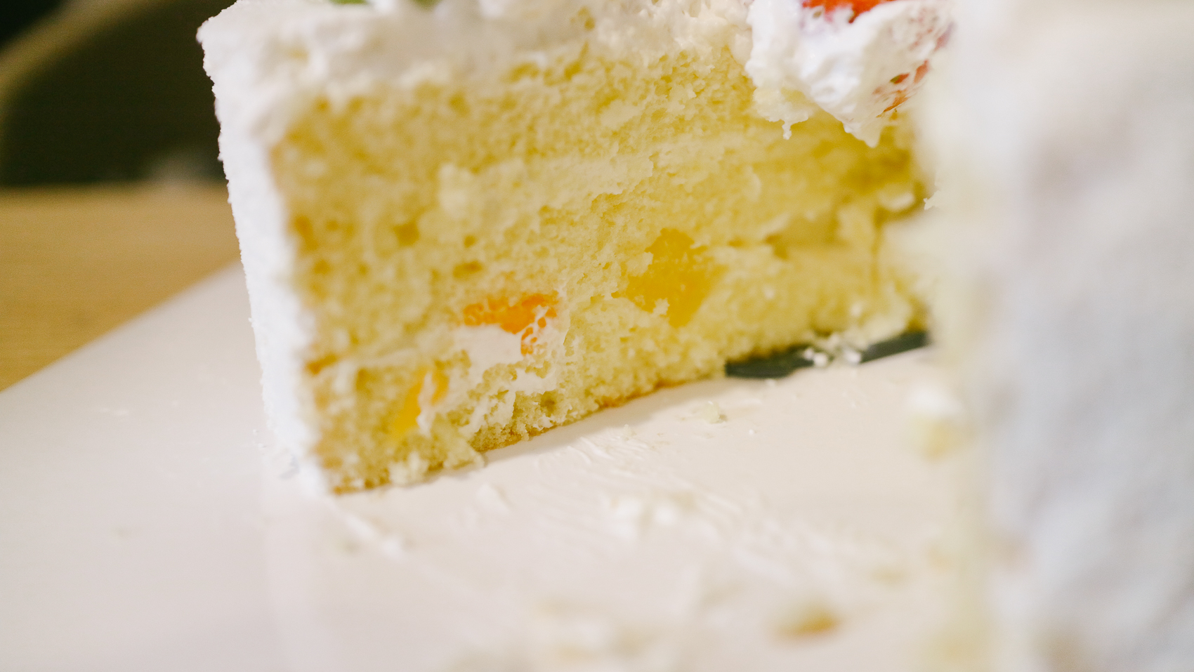 살포시 눈이 내린 듯한 느낌적인 느낌. 레터링 크리스마스 트리 장식과 잎사귀 모형을 제외하고는 다 먹을 수 있는 것들이었다. 맛은 굉장히 부드럽고 적당히 달달해서 부담 없이 누구나 즐길 수 있는 케이크이다.