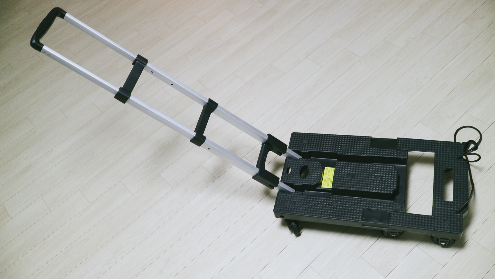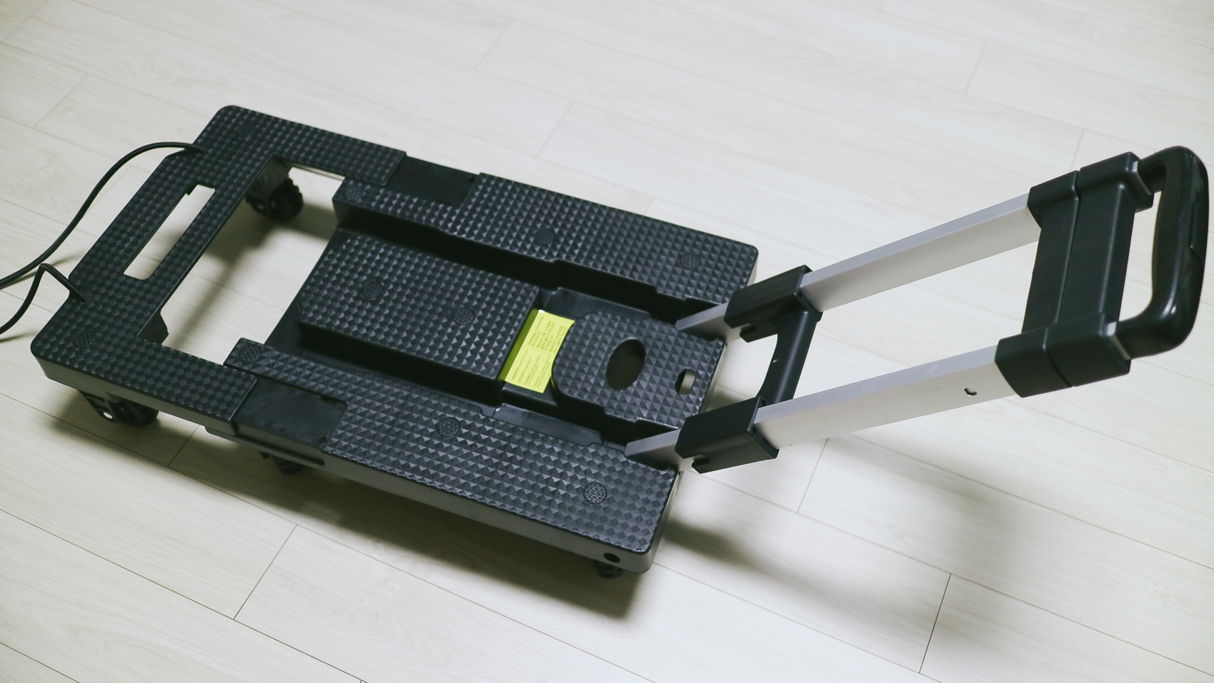 폴딩 한 상태 역시 별도의 손잡이 구멍이 있어 편리하게 들고 다닐 수 있다. 캠핑을 즐기는 분들도 편리하게 물건을 옮길 때 요용 할 것이라 생각된다. 정말 부드럽고 안전감 있게 이동되는 익스텐션 캠핑 접이식 폴딩카트!