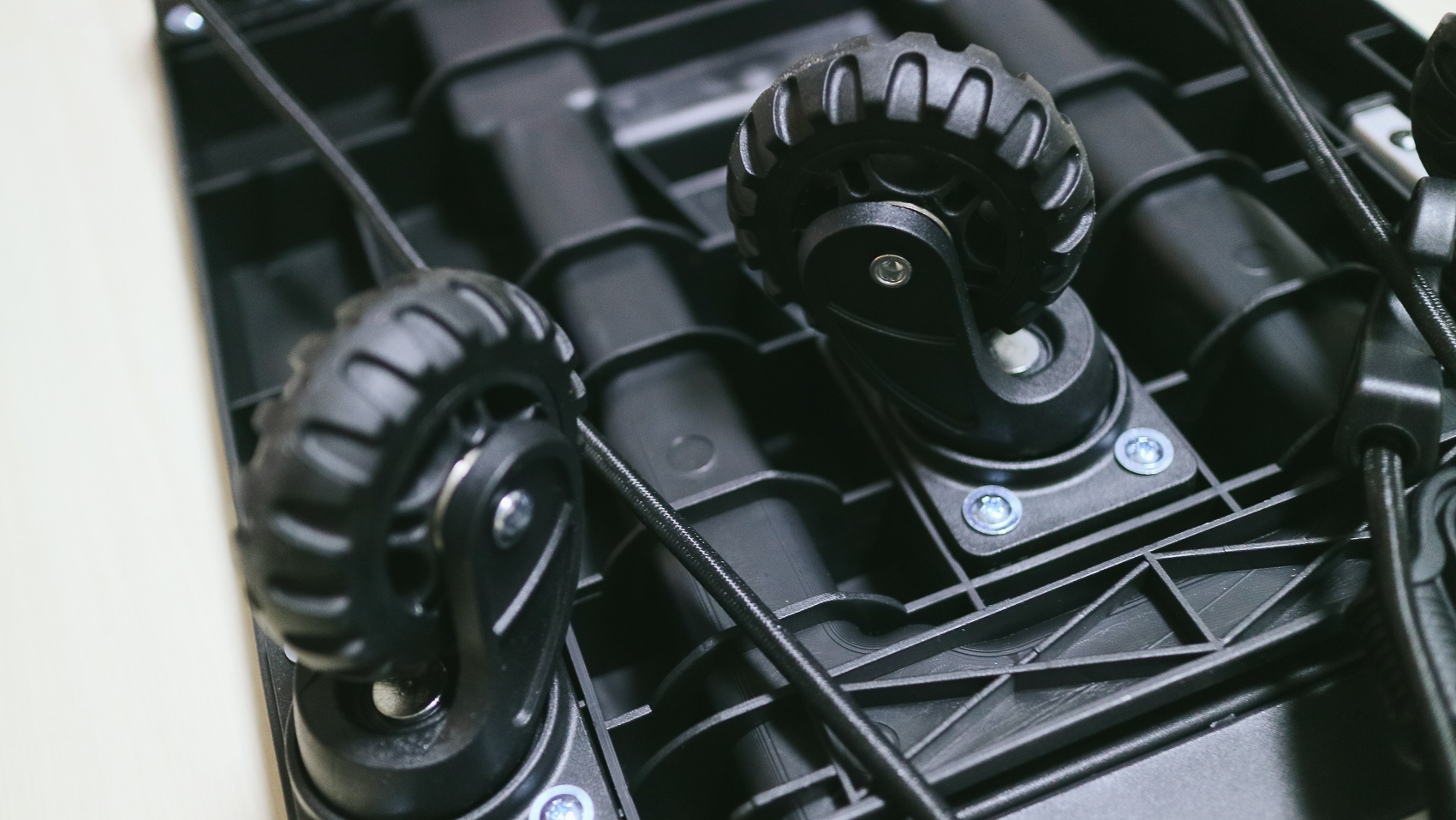 또한 저소음 베어링 탑재되어 있어 바퀴가 굴러가는게 부드럽고 조용하다. 평균 데시발 약 450dB로 조용한 공간에서도 자유롭게 사용할 수 있다.