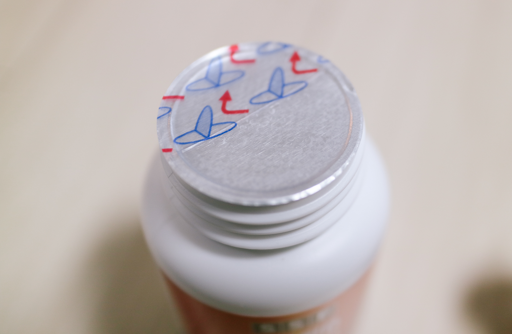 실링을 그림처럼 재껴주면 짜잔 새하얀 비타민D 보인다. 비타민D는 D2~D7까지 6가지가 있는데 일반적으로 활성이 좋은 D2(에르고칼시페롤)와 D3(콜레칼시페롤)가 사용되는데, 비타민 D3은 비타민 D2에 비하여 체내 활성도 및 흡수율이 높다고 한다.