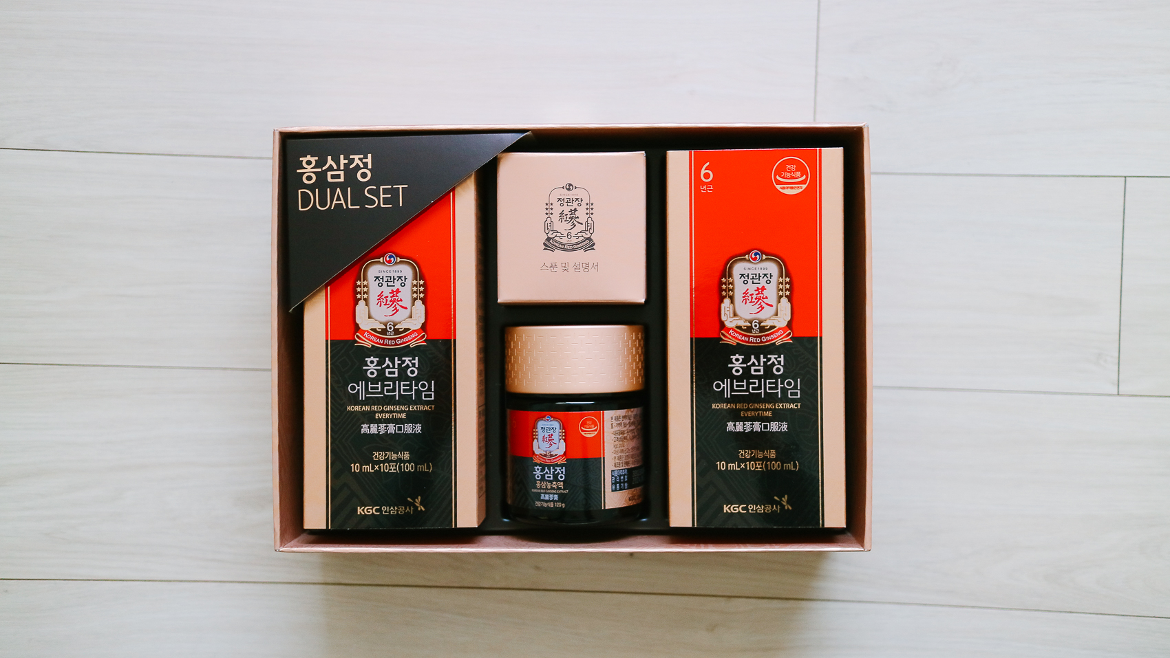 포장 상자를 개봉하면 정관장 듀얼세트 홍삼정 120g + 에브리타임 10포 x2로 구성되어 있다. 비록 작은 양이긴 하지만 어쨌든 메인은 홍삼정이기 때문에 편하게 먹기엔 이만한 게 없다.