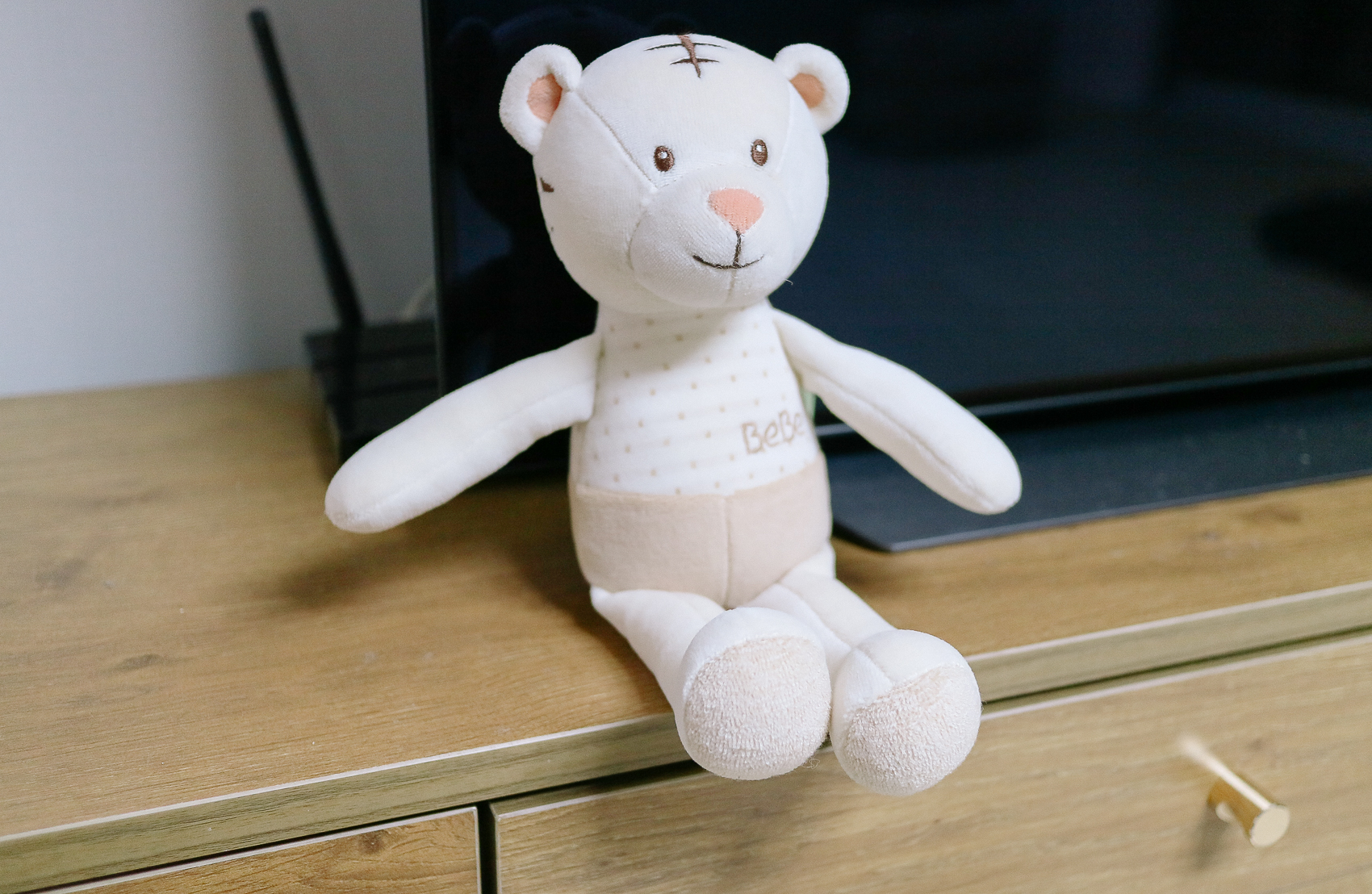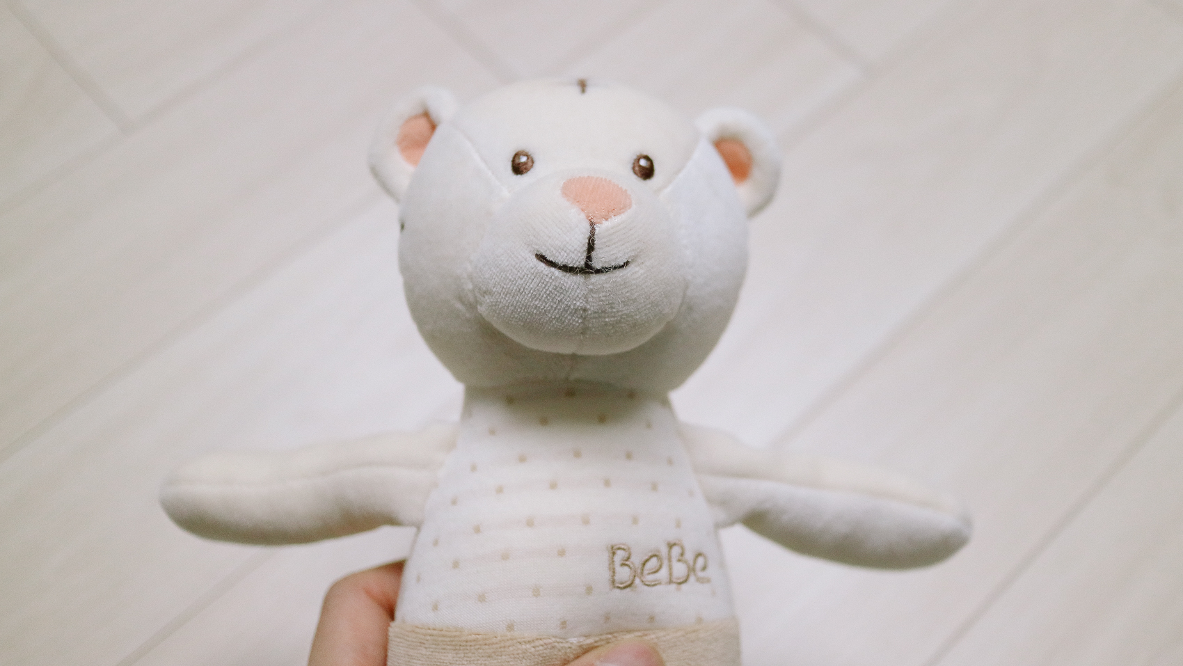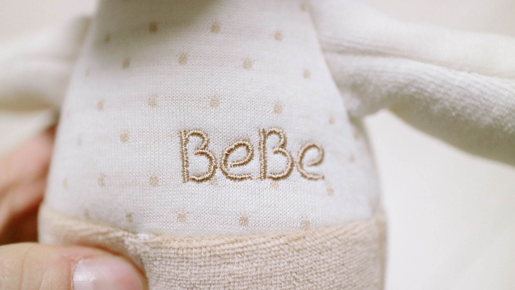 화음 베베의 베베 자수가 인형에 새겨져 있다.