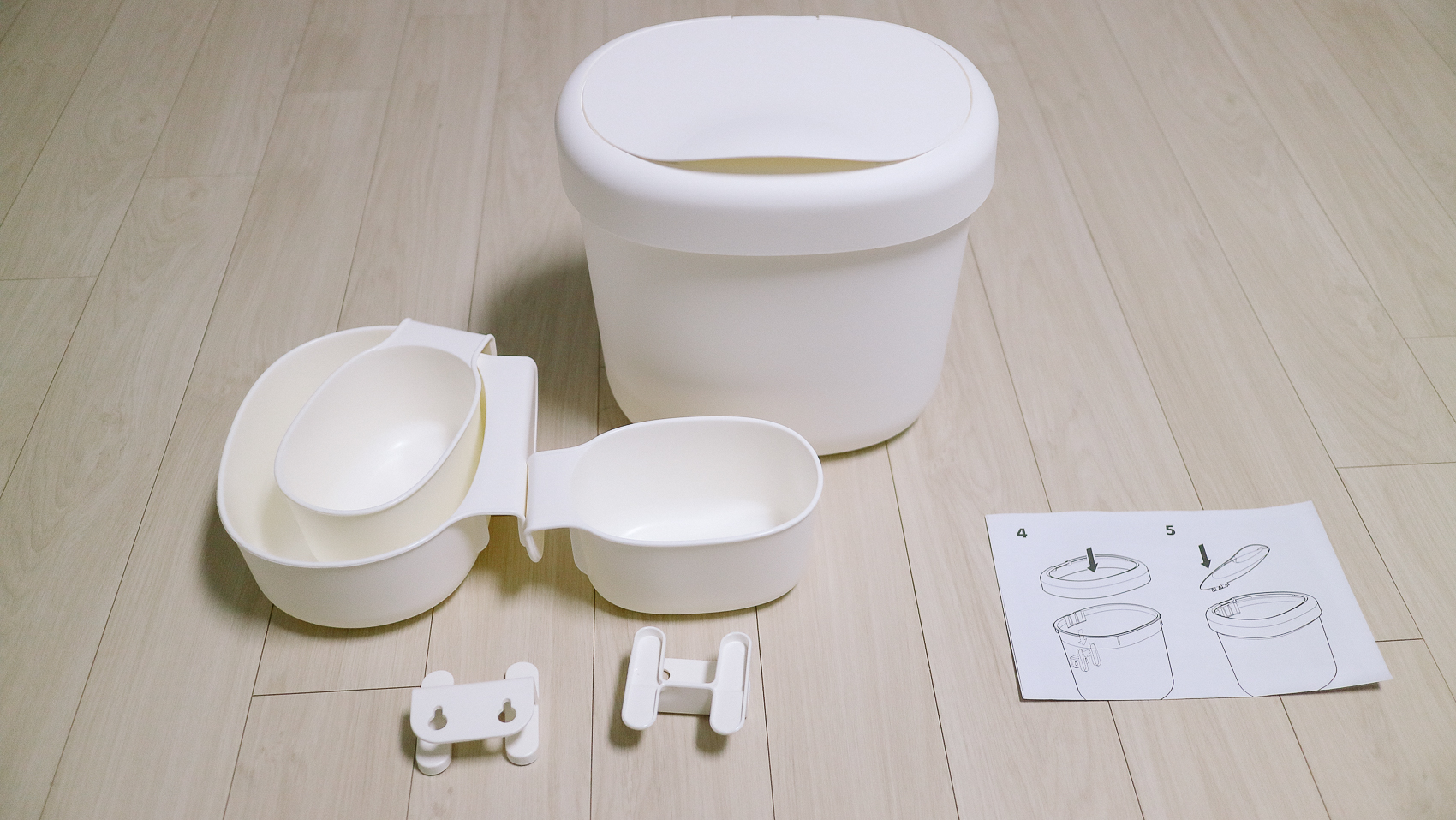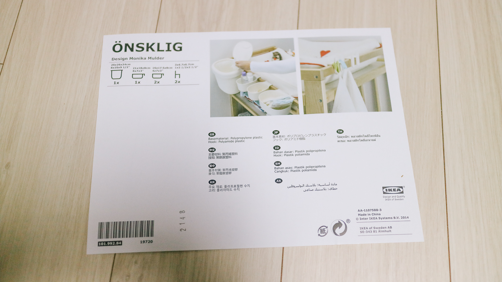 추가로 구매한 이케아 수납통 4종 세트. 걸이식으로 되어 있는 수납통은 임시로 교체한 기저귀 쓰레기통으로 사용해도 좋고, 그 외 물티슈, 로션 등 본인이 사용에 편리하도록 세팅하면 된다.