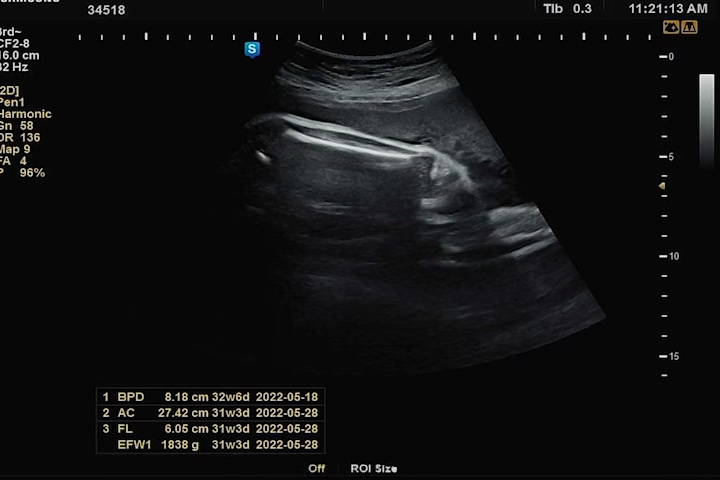 두 손으로 얼굴을 가리고 있어서 얼굴 윤곽이 또렷이 나오진 않았지만, 그래도 눈 뜨고 하품도 하고 해서 너무나 귀여웠다. 이전 기록과 비슷하게 주수에 비해 머리둘레는 살짝 크고, 배 둘레, 다리 길이, 체중은 살짝 미달이었다. 체중도 1.8kg 평균주수 대비 살짝 적지만 작은 아가로 태어날거라 생각한다. 그래도 까꿍이 3kg는 찍자꾸나! 화이팅!!!!
