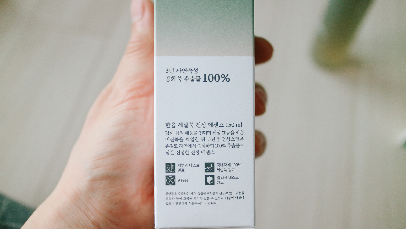 강화 섬의 해공을 견디며 진정 효능을 키운 어린쑥을 채엽한 뒤, 3년간 정성스러운 손길로 자연에서 숙성하여 100% 추출물로 담은 진정한 진정 에센스! 알레르기 및 피부과 테스트 완료. 국내 재배 100% 세 살 쑥 원료로 만들었기 때문에 믿고 쓸 수 있다.