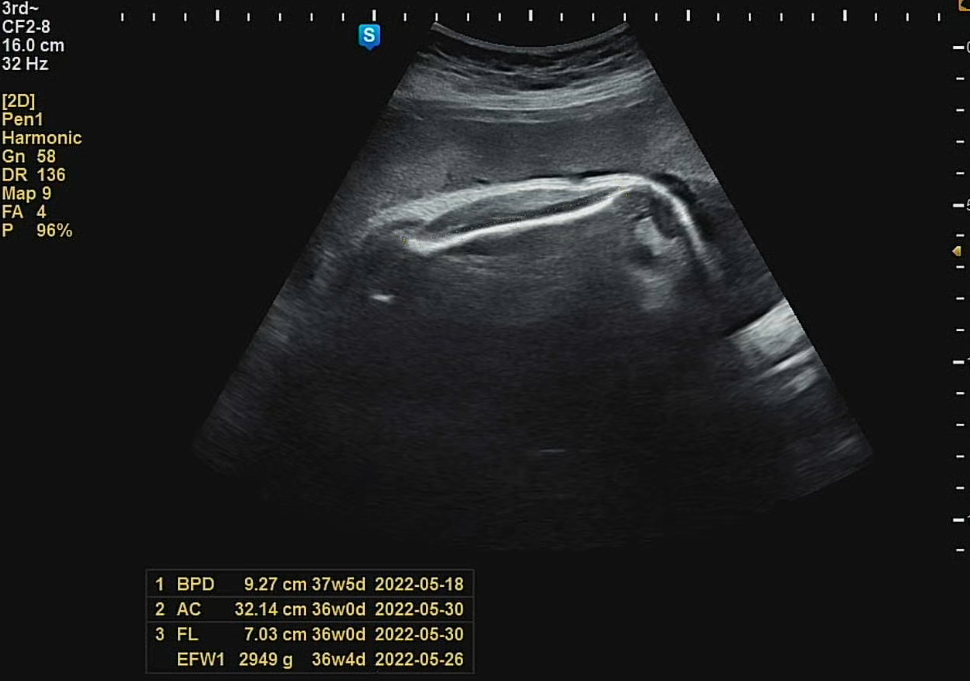 이번에도 역시 머리둘레는 주수에 맞는 크기였고, 배둘레, 다리 길이는 살짝 짧은 편이었다. 그래도, 세상 밖에 나와서 건강하게만 쑥쑥 자라준다면야!! 가장 걱정했던 체중은 일주일 전 검사 때 2,675g 에서 2,949g로 쪘다. 체중이 늘어나는 추이를 봤을 때 다음주 출산 때는 3kg를 충분히 넘길 수 있을 것 같았다.