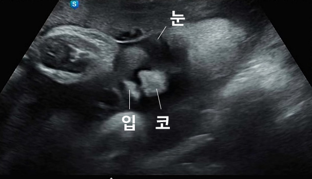 아는 사람한테만 보인다는 초음파 사진. 대략적인 실루엣으로 표현되는 눈, 코, 입이다. 아무래도 초음파는 굴곡을 층별로 표현하기 때문에 이목구비가 잘 표현되는 단면도에서는 저렇게 코와 입술이 굉장히 두툼해 보인다. 눈 기준으로 깊이감을 조절하다 보니 그러는 것 같았다.