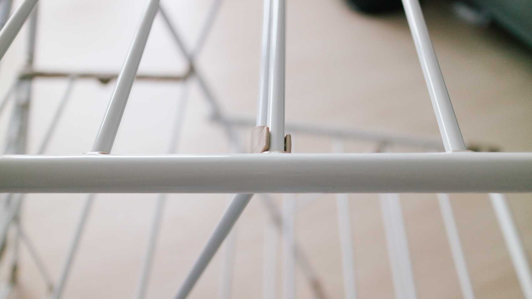 가볍고 내구성이 좋아 설치가 간편하며 튼튼한 가본 스틸 소재로 무거운 빨랫감을 널어도 안전감 있게 건조를 할 수 있다. 고정은 사진처럼 홈에다가 봉 부분을 결합하면 고정이 되는 형식이다.