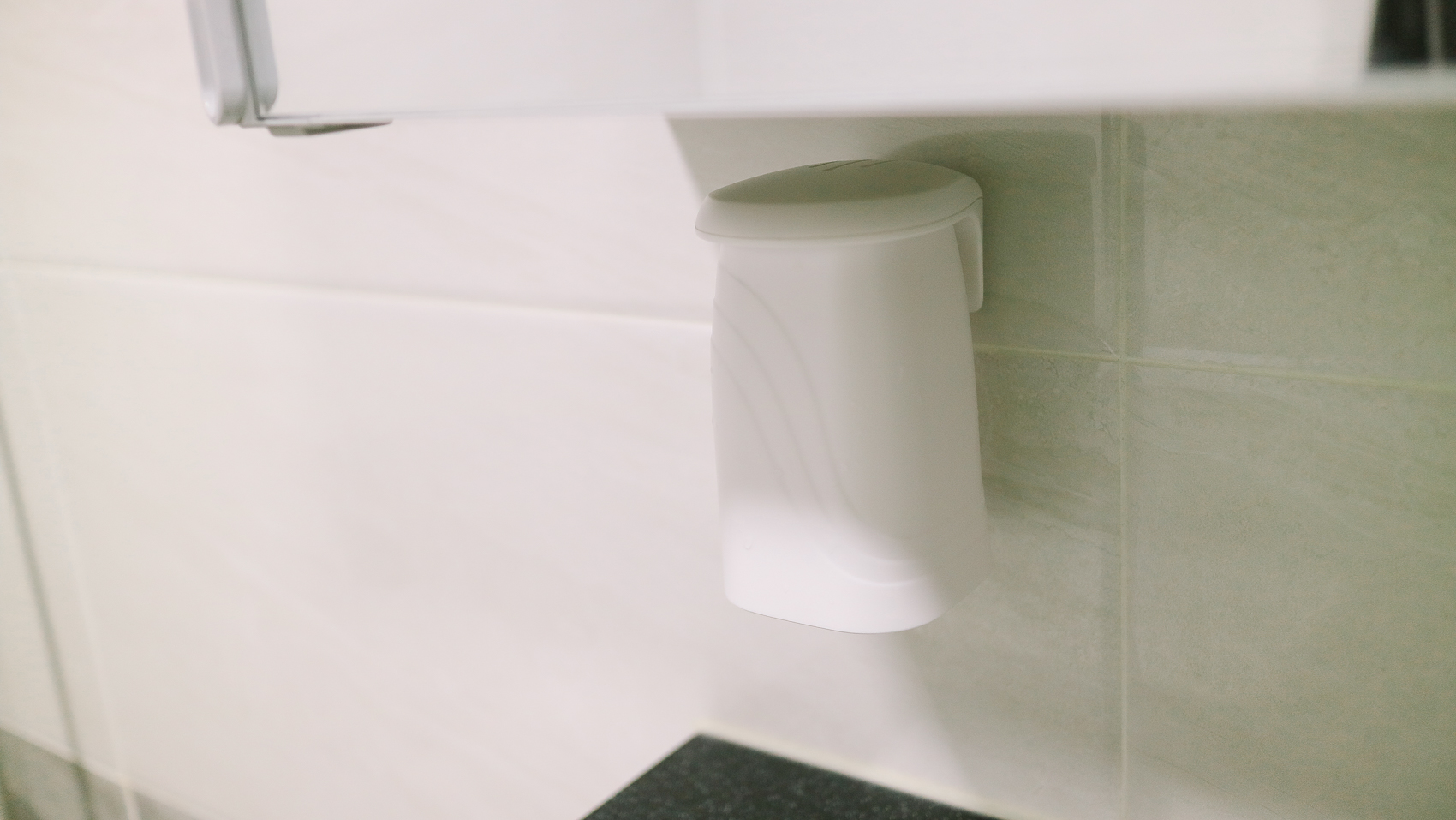 화장실 상부장 바로 아래 부착하여 사용 중에 있다. 너무 과하지 않는 크기로 있는 듯 없는 듯한 느낌을 주고, 양치컵으로 사용하기엔 너무나 부담 없기 때문에 좋은 아이템인 것 같다 :)