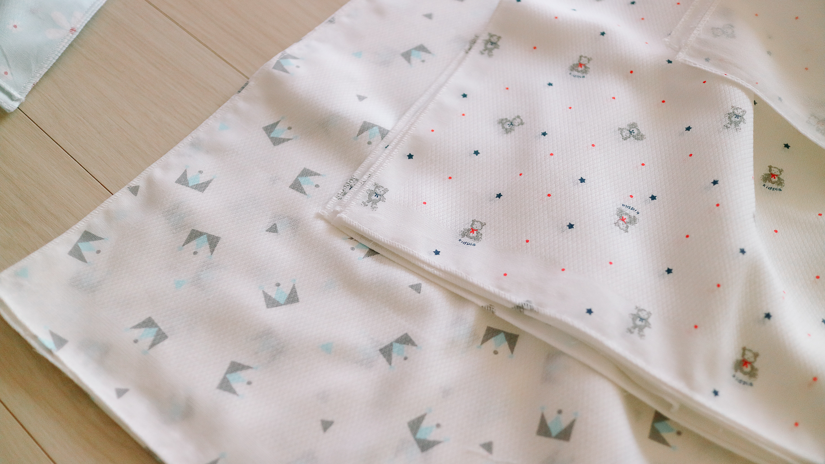 이건 추가 여유분으로 구매한 거즈 손수건. 스타베어, 크라운(블루) 2종류로 구매하였다. 역시 거즈 엠보타입이다.