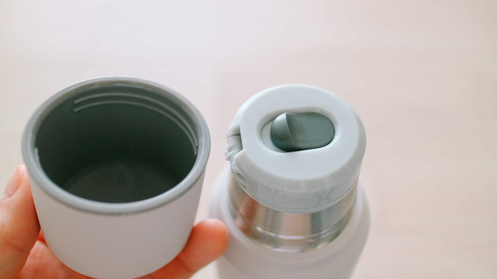그레이, 네이비, 민트 색상 중 무난한 그레이색상을 선택했다. 표면은 일반 스테인리스 보온병처럼 매끈한 질감이 아닌 특유의 거친 텍스처가 있어 미끄럽지 않게 안전감 있는 그립감을 준다.