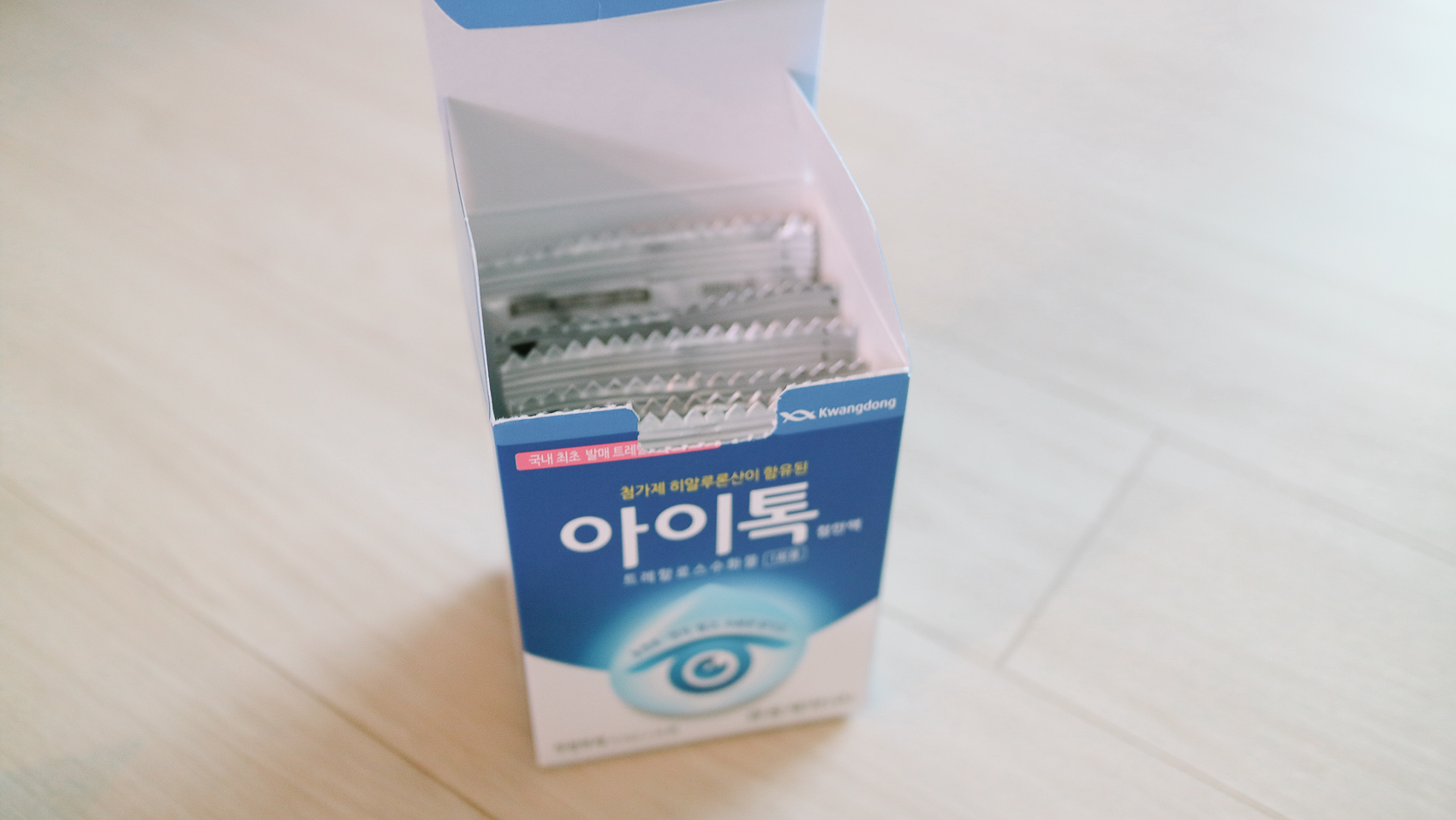 식염수를 추가로 구매했다. 저번에 구매했던 식염수는 용량이 커서 휴대하기가 조금 애매했다. 그래서 근처 약국에서 구매한 아이 톡 점안액!