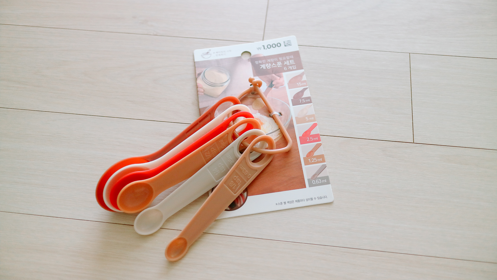 제품은 큰 계량스푼 타입이 있고, 구매한 제품처럼 작은 계량스푼 타입이 있다. 15ml, 7.5ml, 5ml, 2.5ml, 1.25ml, 0.63ml의 6가지 타입으로 있다.
