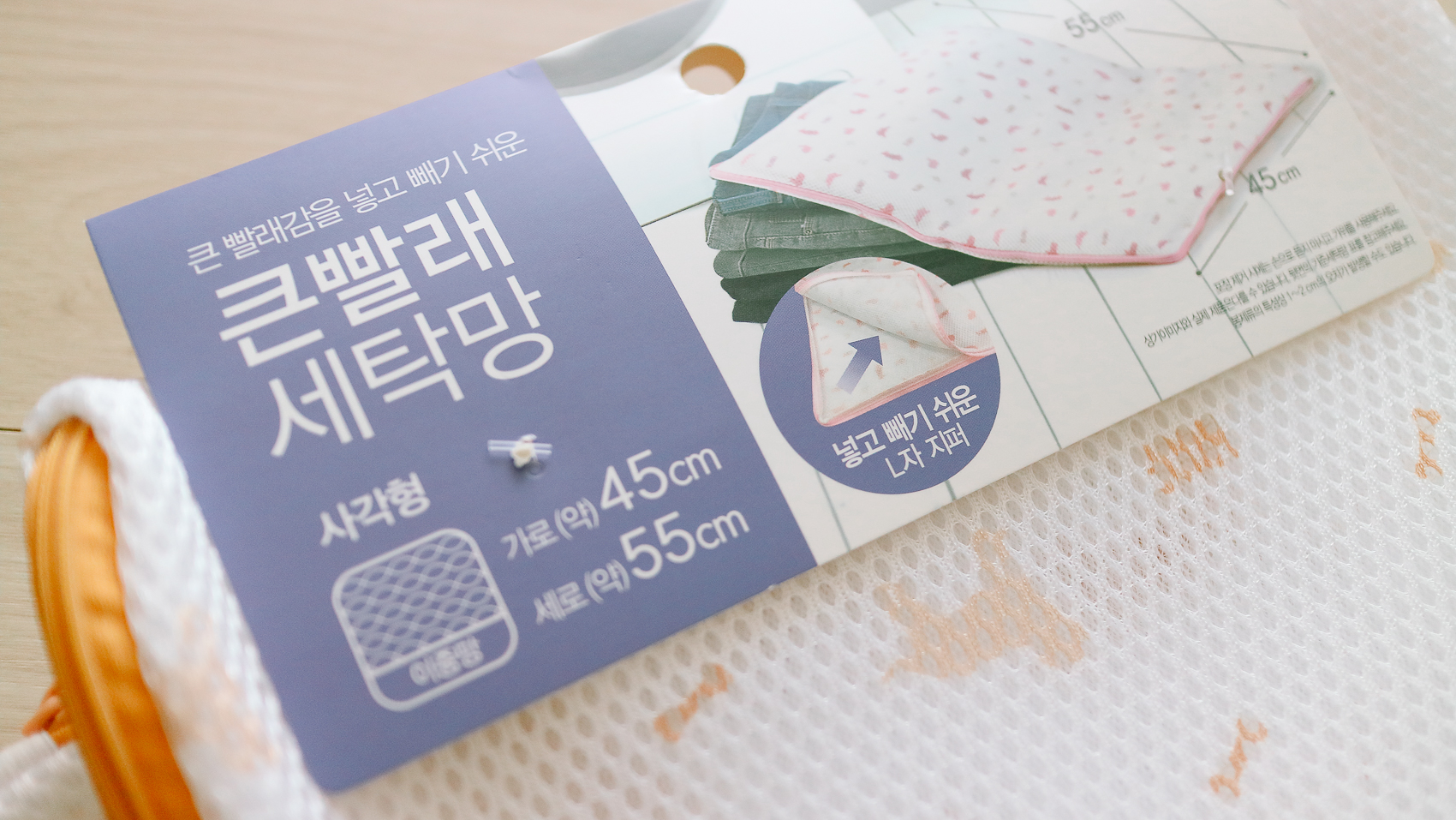사진으로 다 표현이 될지 모르겠지만 2중 방식의 세탁망 처리와 앞전에 언급했듯이 폭신함 질감과 두께감으로 굉장히 완성도가 있는 세탁망이다.