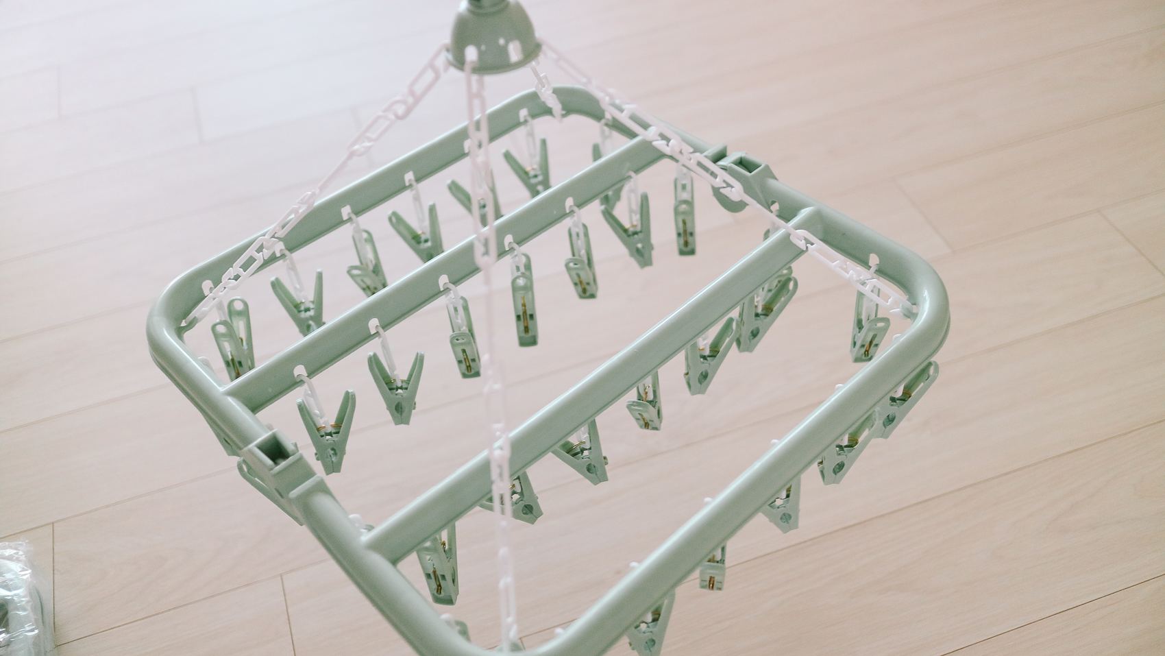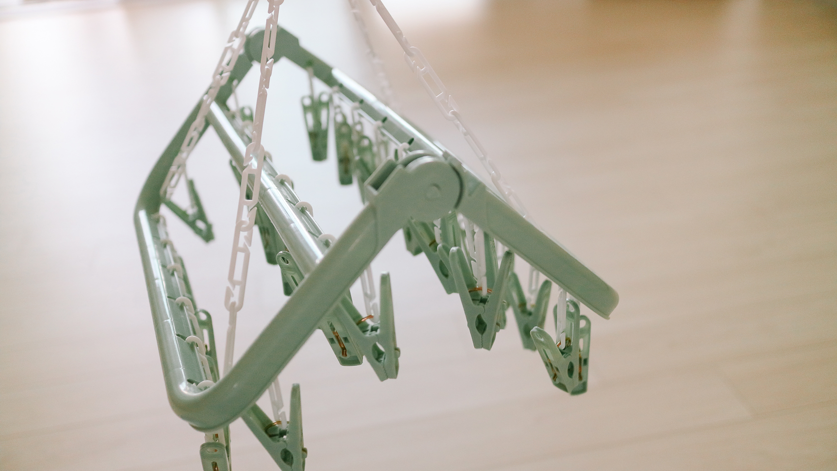 제품은 32개 빨래 집게걸이가 있어 스타킹, 속옷, 양말 등 작은 빨랫감을 많이 걸어서 건조하기 용이하다. 32개의 집게로 되어 있어 떨어짐을 최소화하여 편안하게 건조할 수 있다.