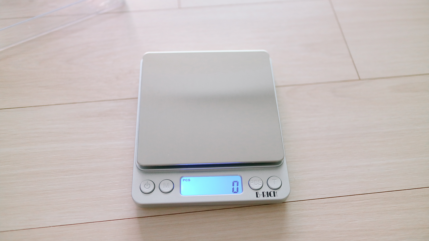 이유식을 할 때 미세한 중량을 측정해야 하기 때문에 별도의 정밀 전자저울을 구매하였다. 제품은 10x12.5x1.7cm의 굉장히 콤팩트한 사이즈가 큰 특징이다.