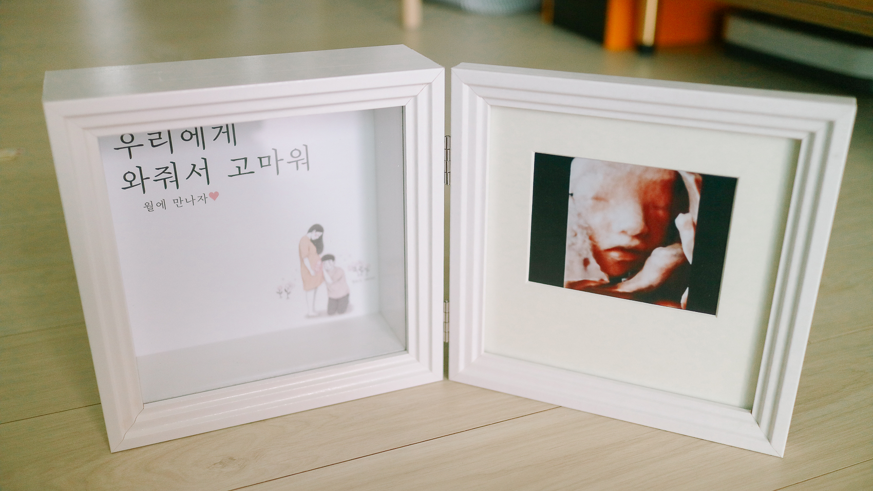 일단 촬영했을 당시에는 아들이 태어나기 전이라 초음파 사진만 넣은 모습이다. 앞서 말했듯이 임테기 및 초음파 사진, 아기 양말, 탯줄 보관함도 겸하여 다양하게 아기의 첫 순간을 기념할 수 있는 소중한 아이템이라고 할 수 있다.