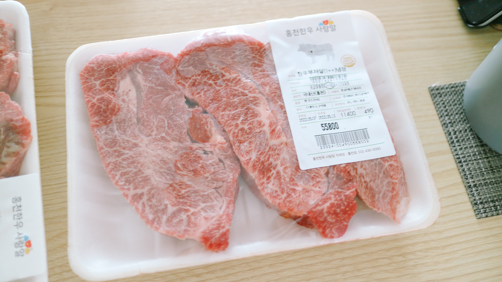 가족이 강원도 여행을 다녀왔다가 홍천 한우 사랑말에서 고기를 사다 주셨다. 덕분에 오래간만에 소고기의 메카 강원도 소고기를 직접 먹어볼 기회가 생겼다.