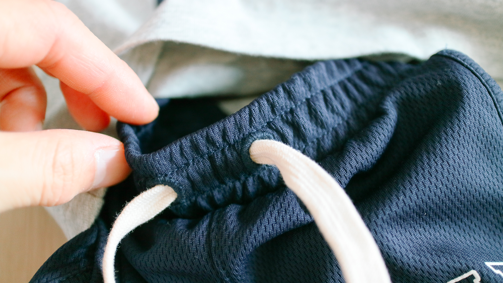 바지는 운동복처럼 매쉬로 되어 있어 통기성이 좋고, 밴딩 마감으로 아기가 편리하게 입을 수 있다.