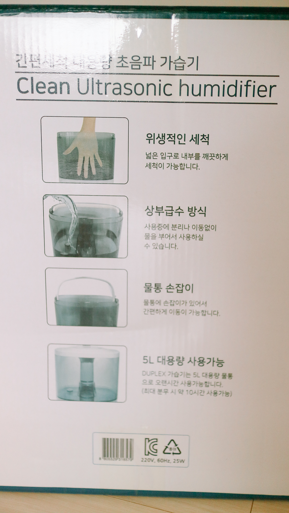 여름철에는 크게 필요하지 않지만 혹시나 하는 마음에 미리 주문한 듀플렉스 저소음 초음파 5L 가습기! 예전에 가습기 때문에 큰 이슈가 있었던지라 물로만 사용하는 모델을 찾고 찾아서 구매!