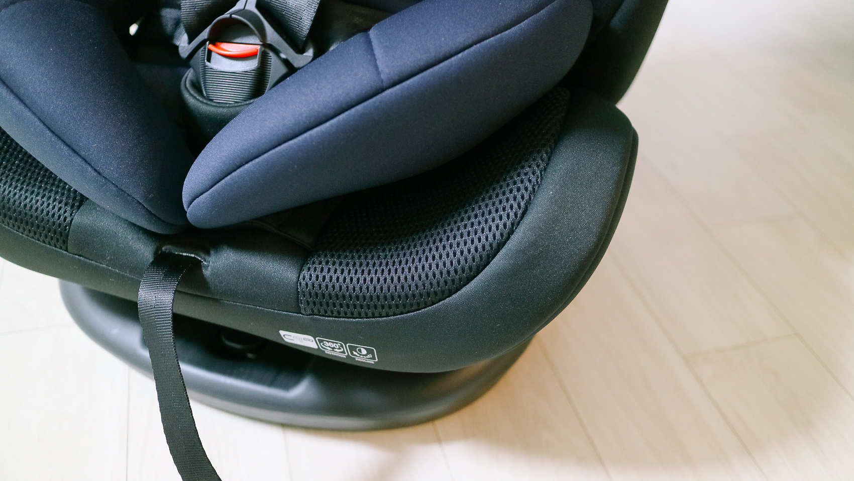 견고하게 마감되어 있고 신생아부터 사용할 수 있도록 신생아 이너시트도 있는 것을 볼 수 있다. 도톰한 엉덩이 쿠션, 아이의 몸을 감싸는 이너시트와 머리를 보호하는 필로우로 신생아와 몸집이 작은 아이에게도 안성맞춤이다.