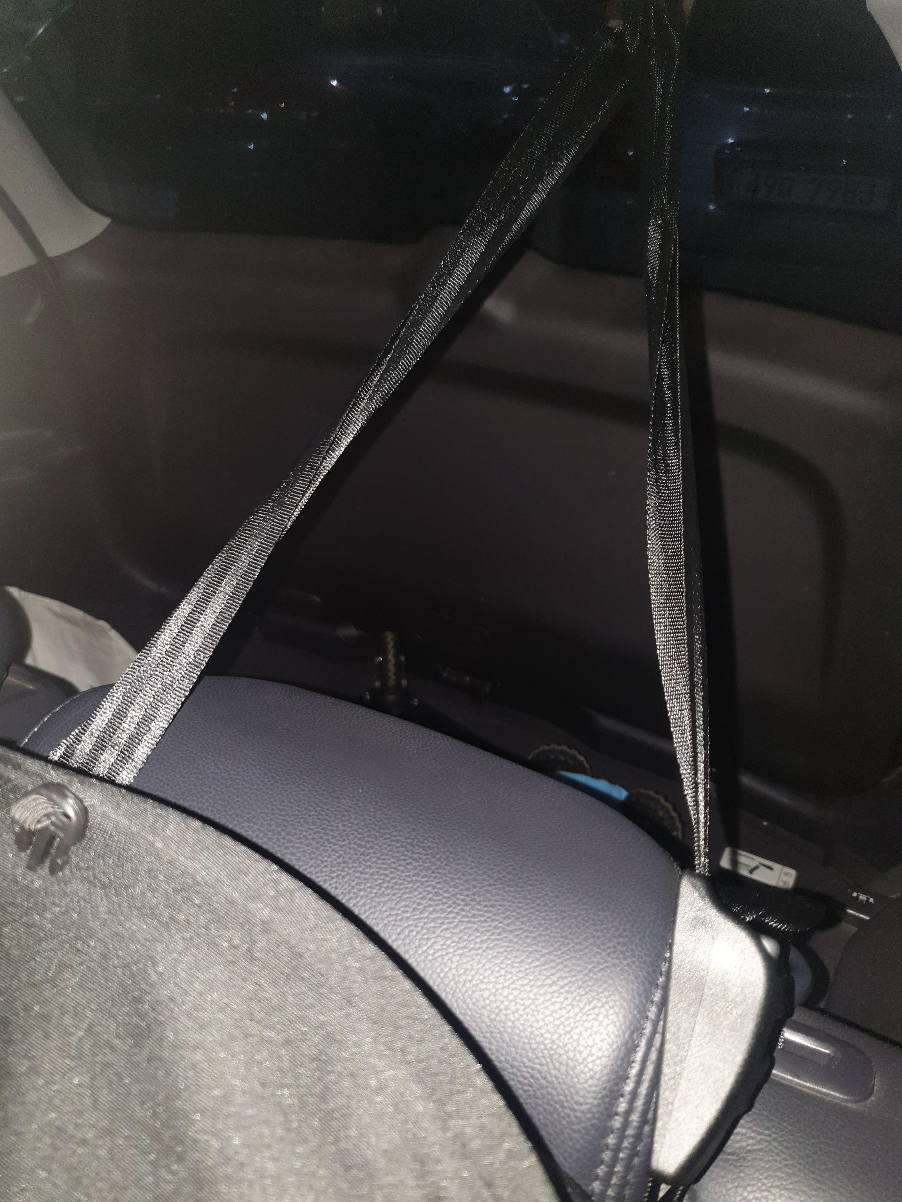 탑 테더까지 장착한 모습. SUV 차량이라 상단에 고리 부분에 걸어놓았는데, 현재는 그냥 뒷좌석 헤드 쪽에 고정시켜 놓았다. 탑 테더는 차량 충돌 충격 시 카시트가 앞으로 튀어나가는 것을 방지함과 더불어 카시트와 차량 시트의 유역을 최소화여 상하좌우 흔들림을 막아준다.