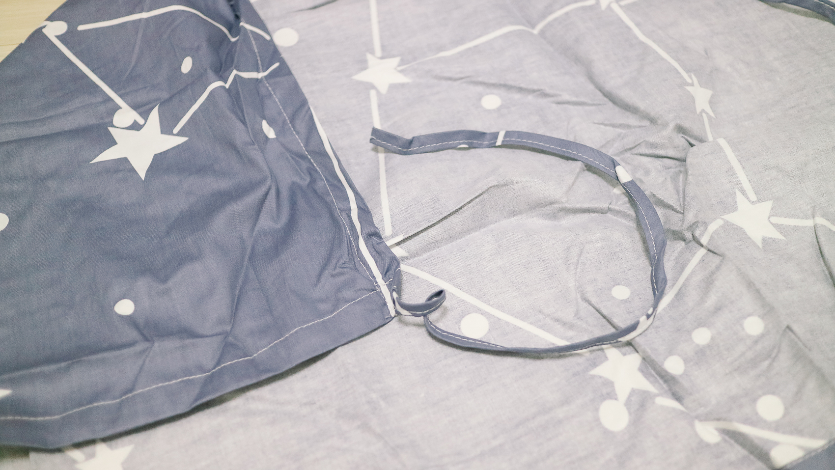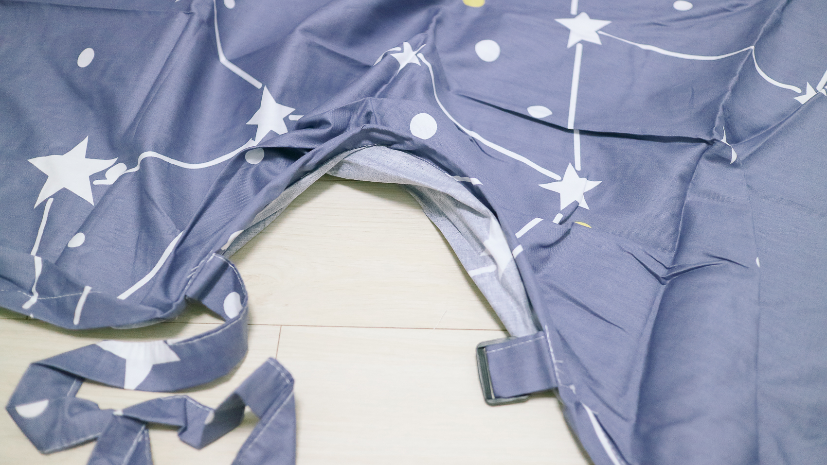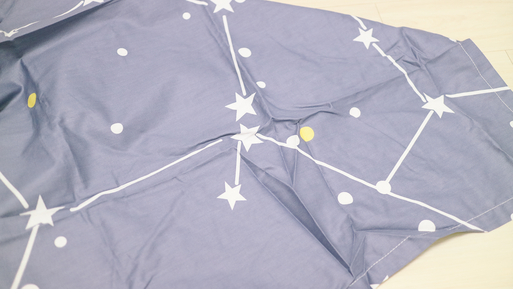 밝은 색상보다 더욱더 프라이빗하게 어두운 색상으로 선택하였다. 밤하늘 별자리가 떠있는 것처럼 네이비 기본 색상에 별과 동그라미 패턴이 있는 디자인이다.