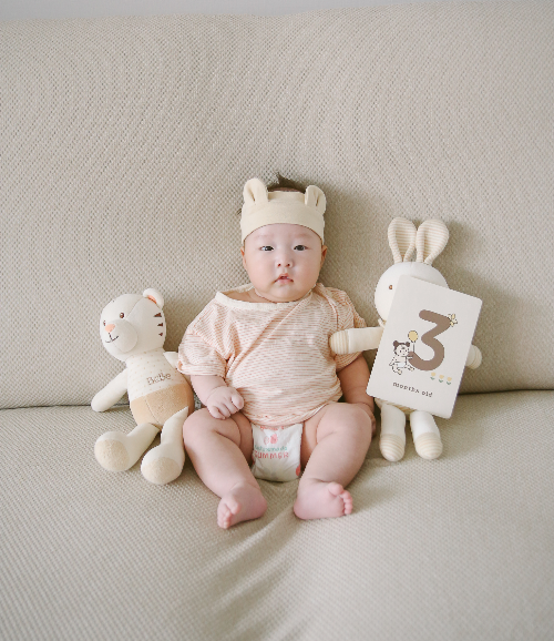 아들이 100일 미만이었을 때 헤어밴드를 하고 촬영했던 사진. 나름 옷도 깔맞춤 하고 귀여운 소품을 활용한다면 평소에도 그럴싸한 셀프 촬영을 할 수 있는 아이템이다😘😍