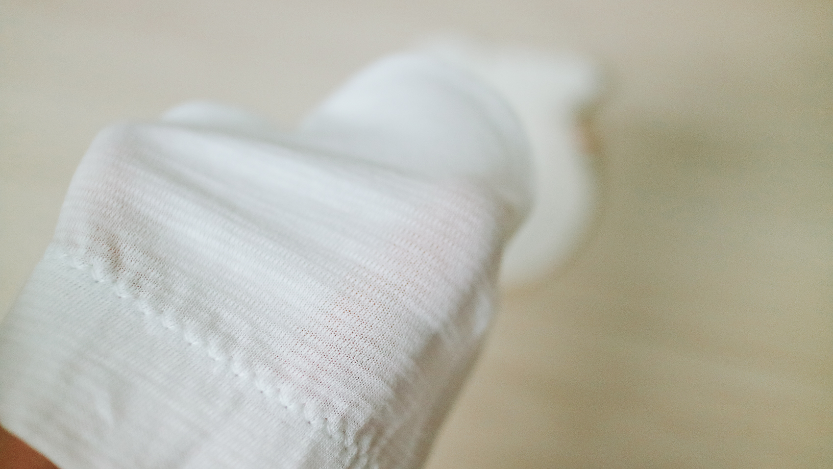 신생아는 신체적으로 제어가 미숙하기 때문에 본인 손톱으로 피부를 긁어 상처가 나는 경우가 있어 손싸개가 필수이다. 여분용이 있었지만 아기가 물고 있다 보면 금방 젖어버리기 때문에 넉넉히 여분용이 필요했다.