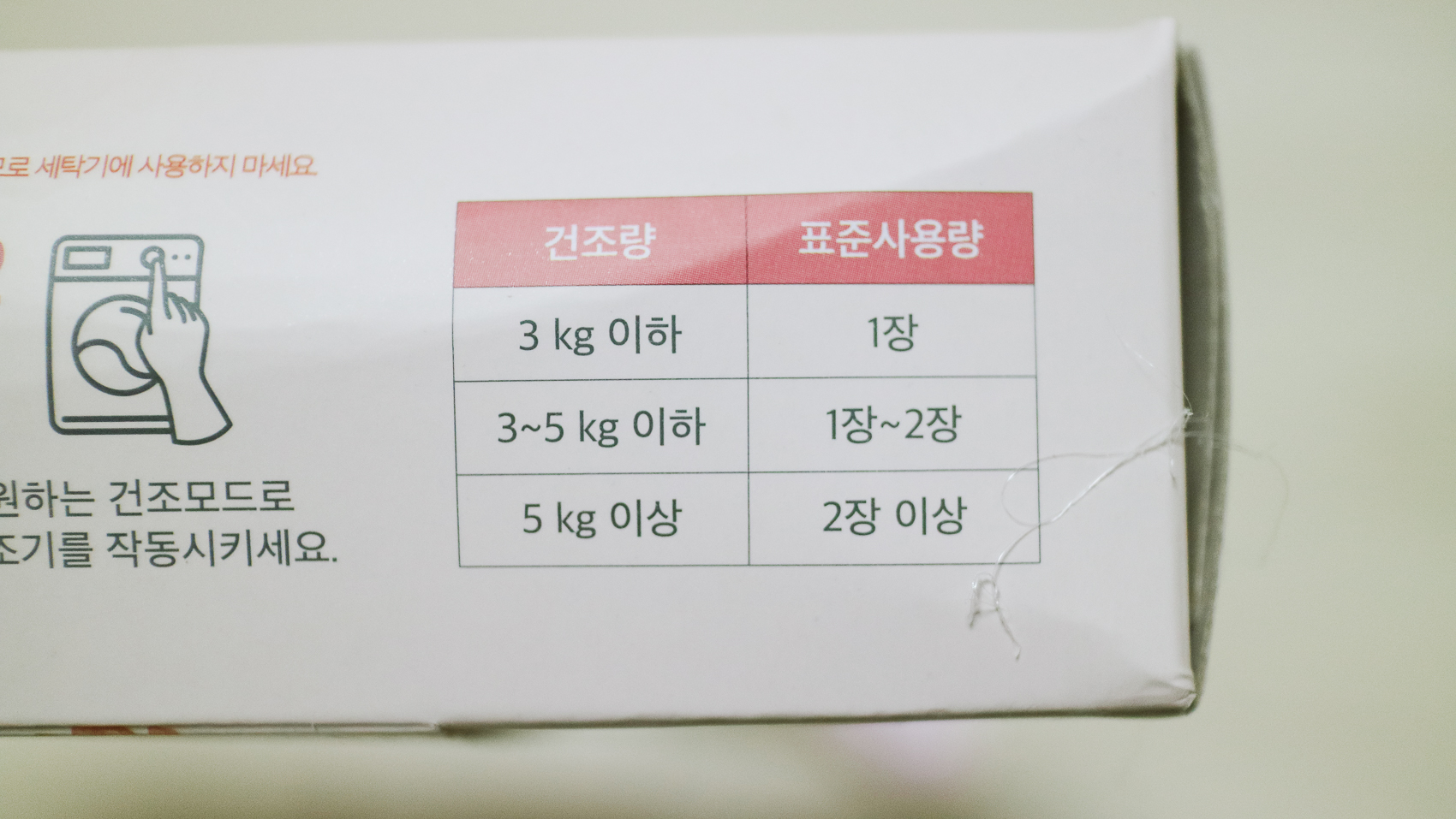 건조량에 따른 드라이 시트 표준 사용량이 있기 때문에 이를 참고하여 사용하면 된다. 확실히 비 오는 날에 건조기를 사용하면 조금 꿉꿉한 냄새가 날 때가 있는데 드라이 시트를 넣고 건조기를 사용하면 향기로운 향을 머금고 있어 무언가 쾌적한 느낌을 선사한다.