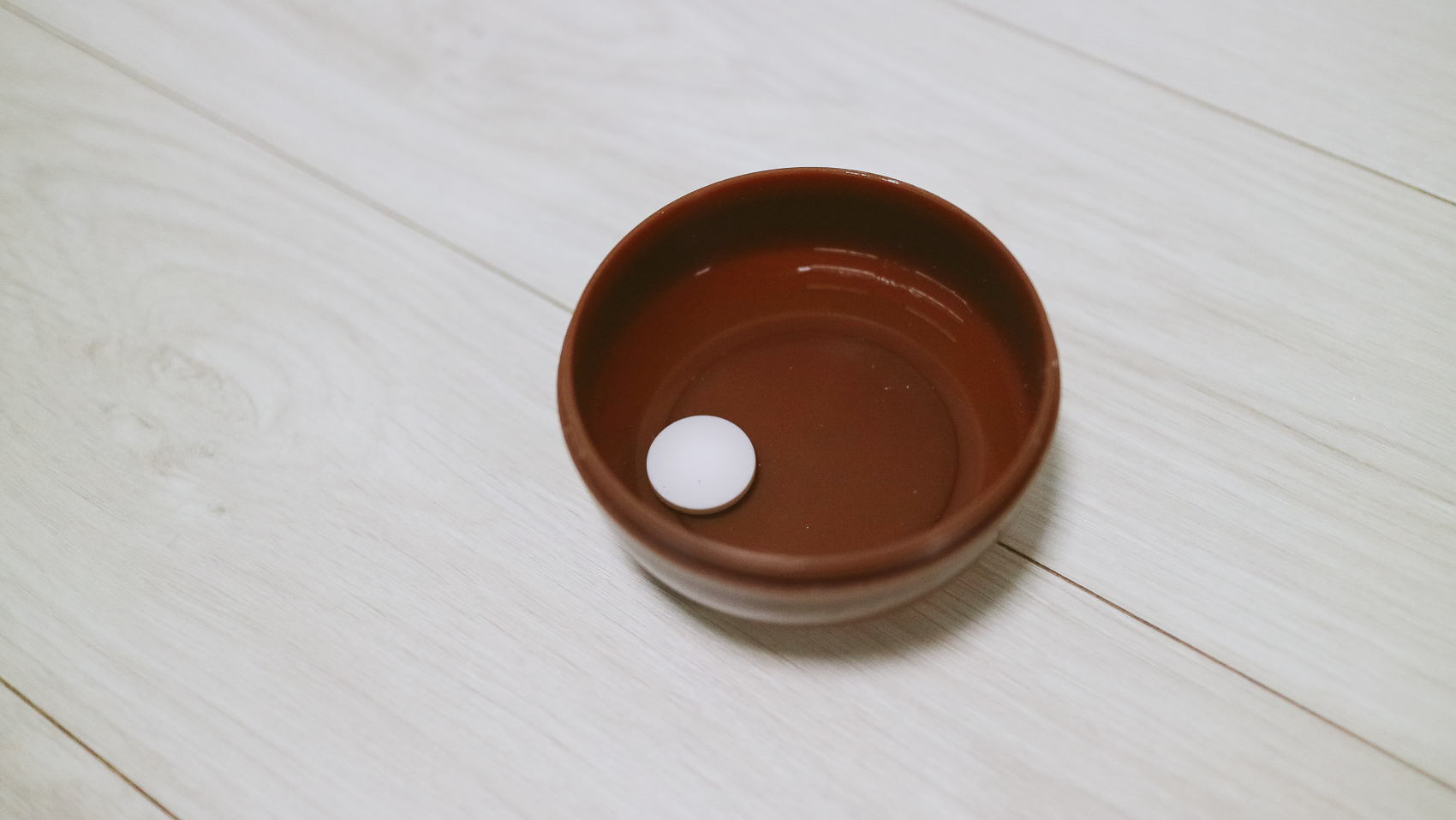 ①용기 안에 유인제를 넣고 15~23ml의 물을 넣어준 뒤 유인제가 다 녹을 때까지 약 30분 정도 기다린다.