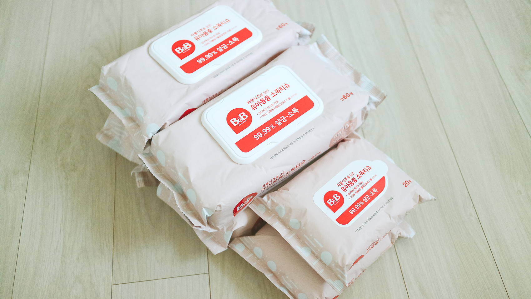 꾸준히 사용 중인 비앤비 세정 티슈 캡형 60매! 아기들은 모든 장난감과 사물을 입으로 가져가서 빨기 때문에 청결에 신경 씀과 동시에 무해한 제품을 사용해야 한다.