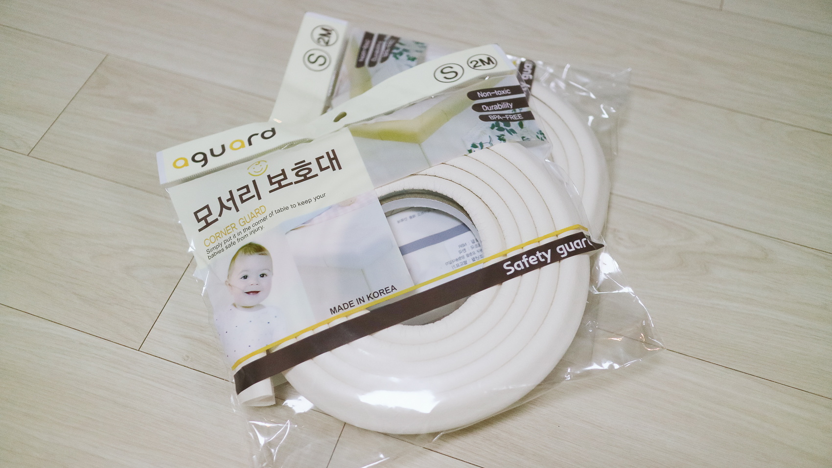 육아 시 필요한 모서리 보호대. 이것저것 서칭 후 구매하게 된 아가드 국산 아기 모서리 보호대. 제품은 기본 타입으로 총길이 2M 제품으로 구매하였다.