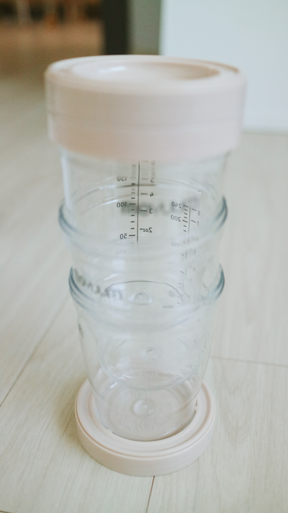 용량 눈금이 선명하게 표시되어 있어 이유식 양을 직관적으로 조절할 수 있으며 돌려 잠그는 구조로 실리콘 패킹이 장착되어 있어 내용물이 흐르거나 새는 것을 방지한다.