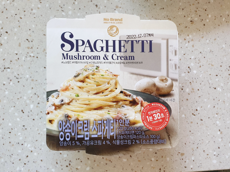 가끔씩 노브랜드에서 장을 보곤 하는데, 간단하게 먹을 수 있는 요깃거리르 찾다가 양송이 크림 스파게티를 구매하게 되었다. 파스타를 좋아하는 나로서는 노브랜드에서 구매했던 다양한 간식을 좋아했던 지라 이번에도 당연히 맛있을 거라는 기대로 고민 없이 구매하게 되었다.