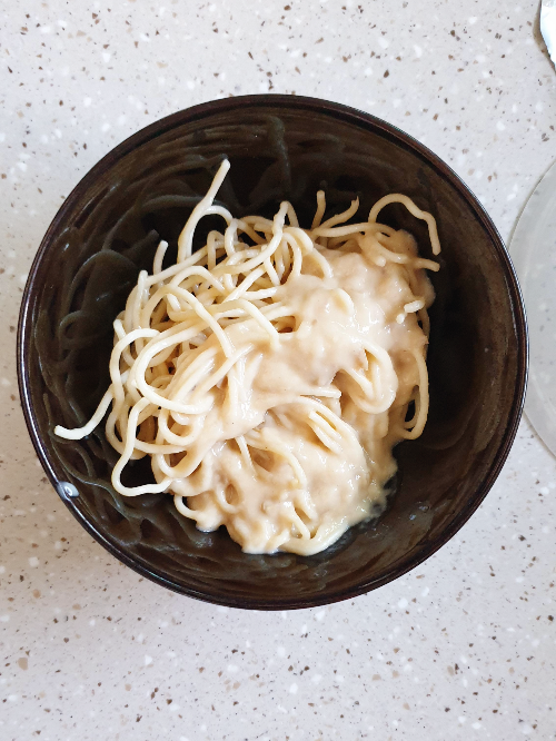 전자레인지에 돌리는 것까지 찍었는데, 완성된 노브랜드 간편 양송이 크림 스파게티 모습을 안 찍었다..허허🤣