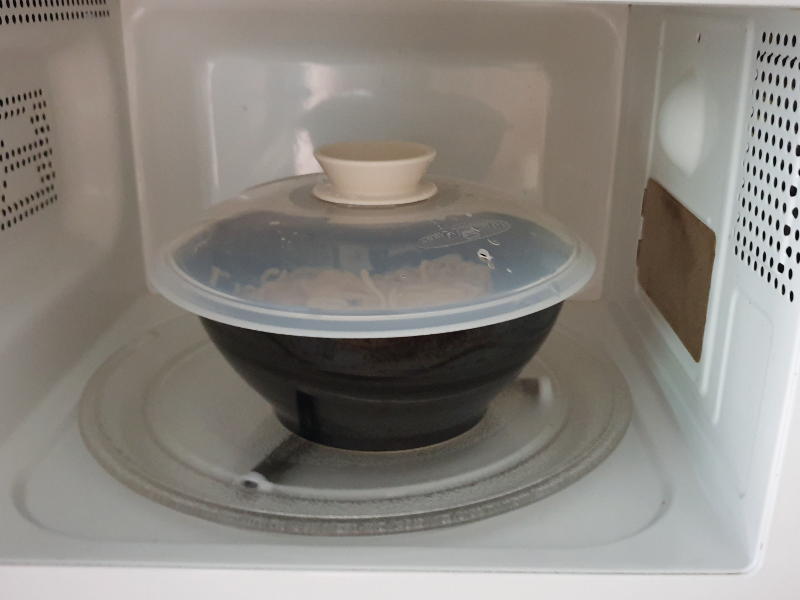 ②외부 종이 케이스를 다시 용기에 씌워 전자레인지에 1000W 기준 1분 30초간, 700W 기준 2분간 데워준다.