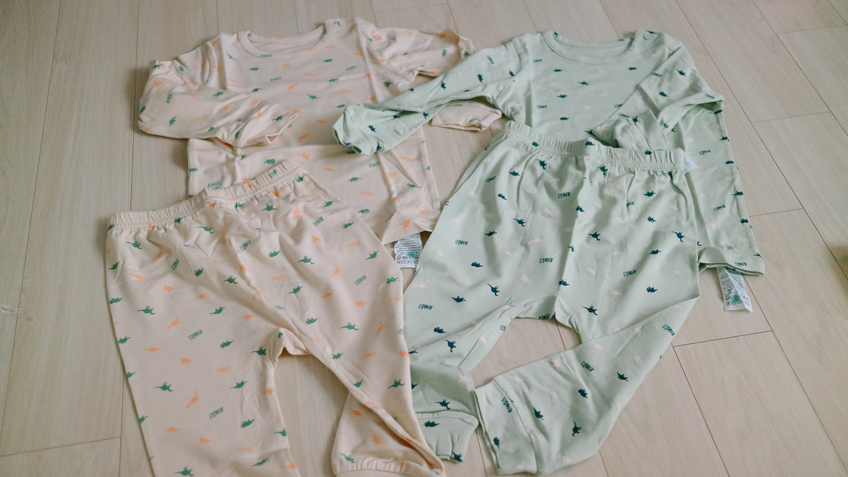 일단 2가지 색상으로 선물 주셨는데, 패턴은 공룡으로 동일하나 색감의 다채로운 정도가 조금씩 상이하여 얼핏 보면 다른 디자인처럼 느껴지기도 하다. 왠지 다른 두벌 구매한 느낌이랄까 😀