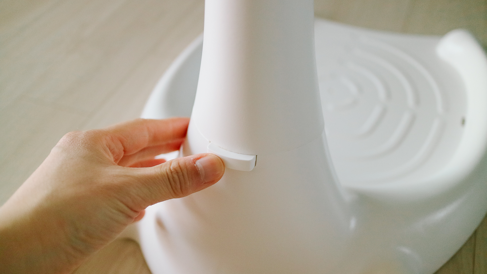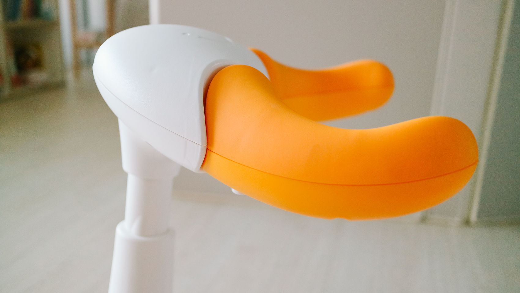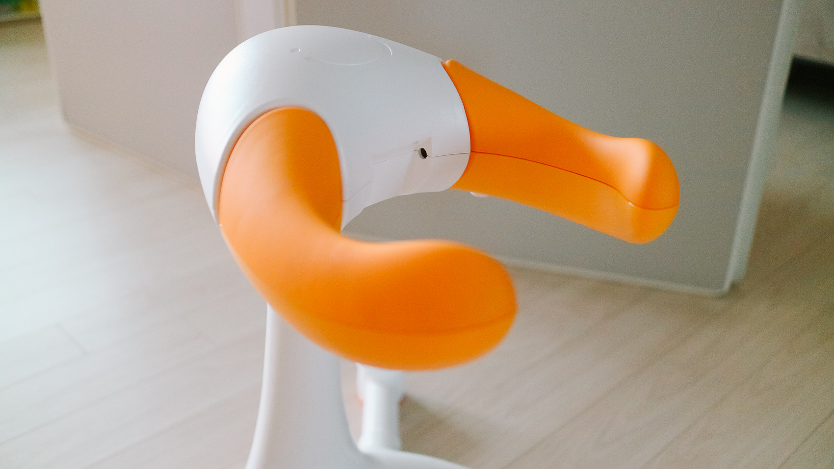 또한 기둥 뒤에 버튼을 누르면 높이 조절을 할 수 있어 아이의 신장에 알맞게 조정하여 사용하면 된다.